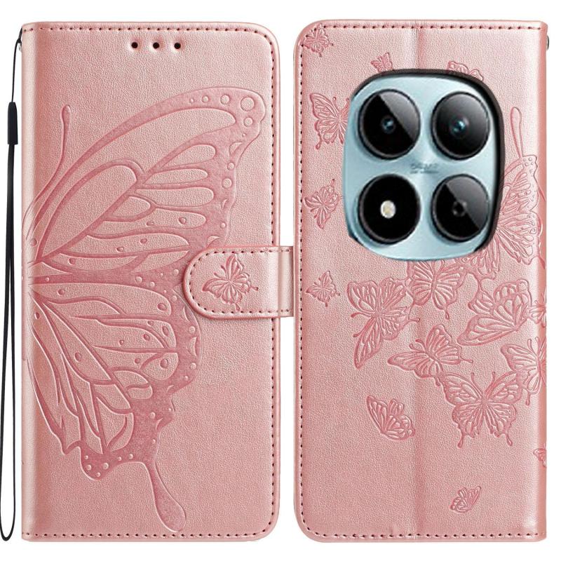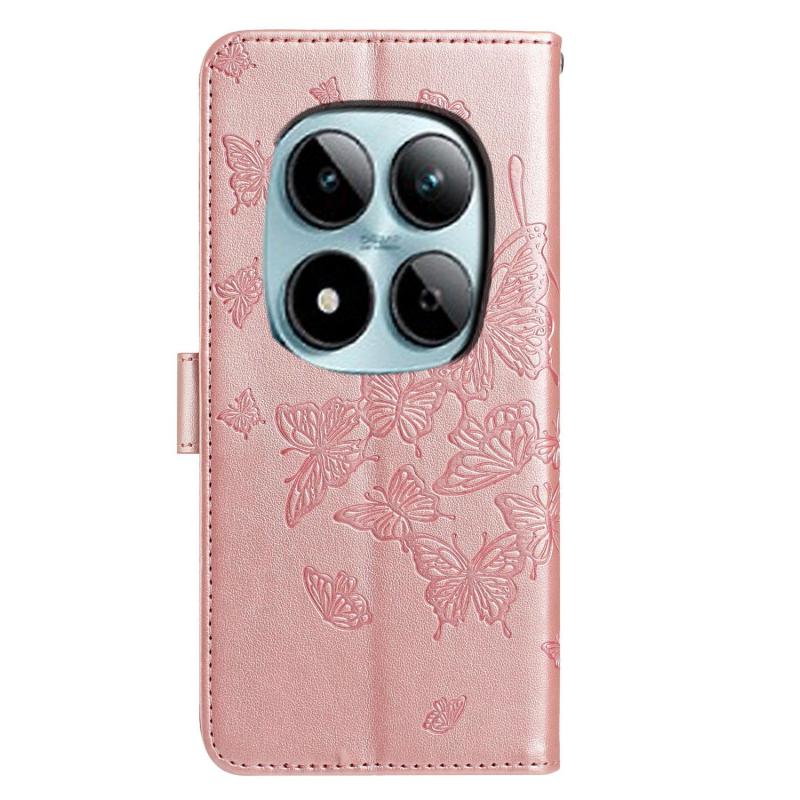 For Redmi Note 15 Pro 5G Global 163.6mm Butterfly Flutter Pattern Embossed Leather Phone Case(Rose Gold)