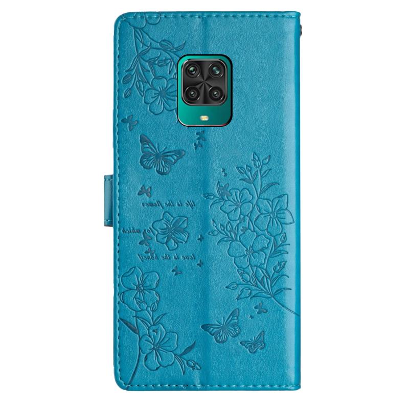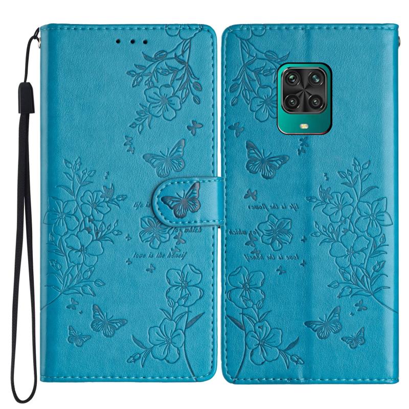 For Redmi Note 9 Pro Butterflies and Flowers Leather Phone Case(Blue)