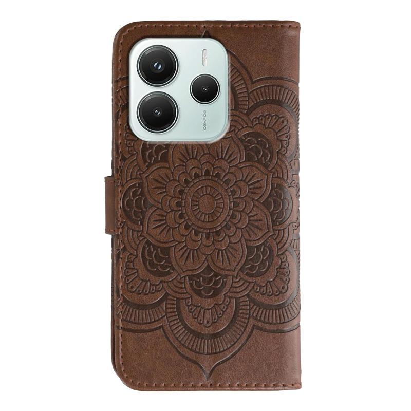 For Redmi Note14 4G 163.25mm Sun Mandala Embossing Pattern Phone Leather Case(Brown)
