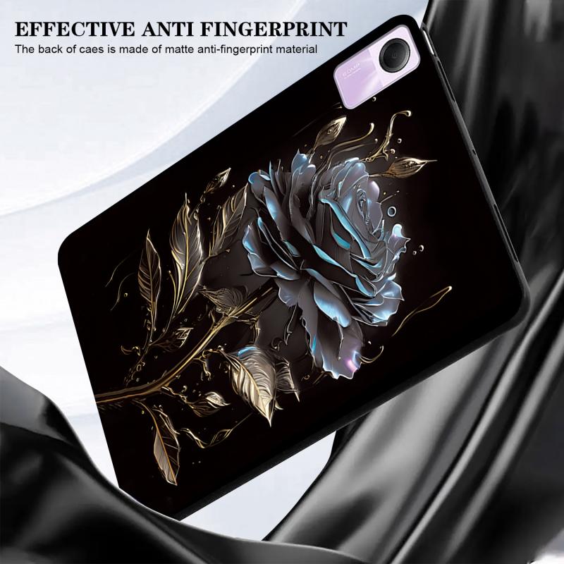 For Redmi Pad SE 8.7 4G Color Painting Pattern Smart Tablet TPU Case(Black Rose)