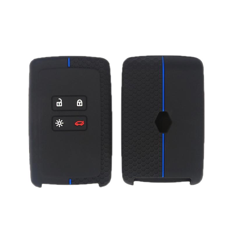 For Renault Koleos/Megane 2pcs 4 Button Honeycomb Pattern Silicone Key Cover(Black Blue Line)