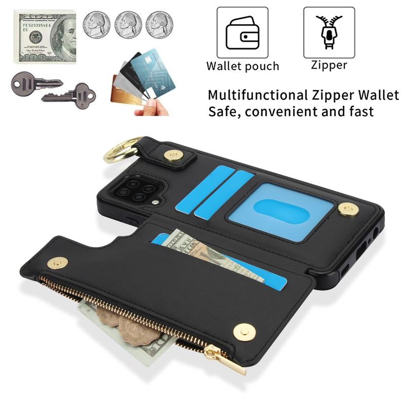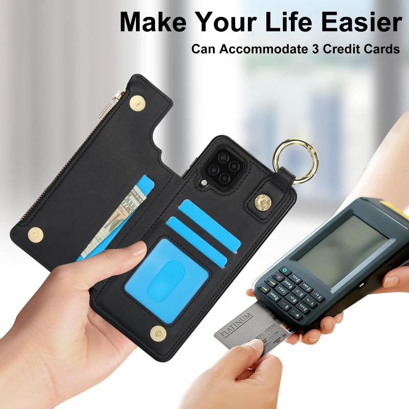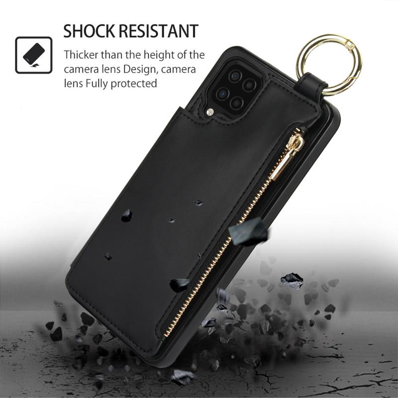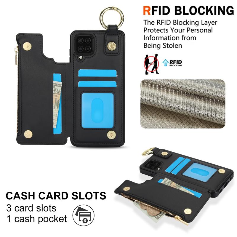 For Samsung Galaxy A12 RFlD Anti-theft Double Buckle Ring Zipper Card Phone Case(Black)