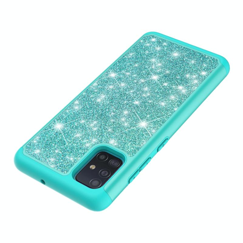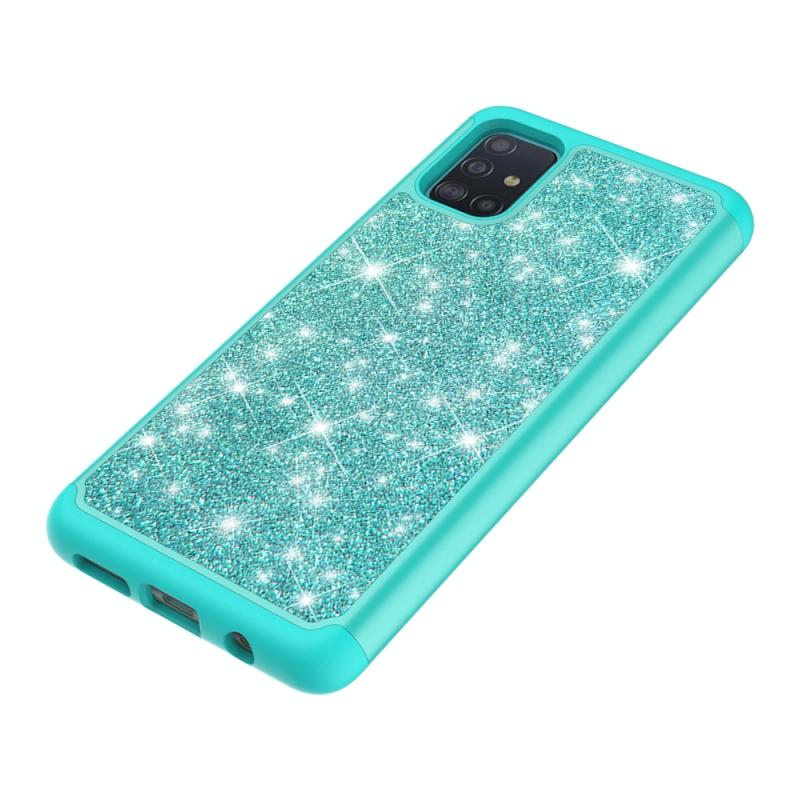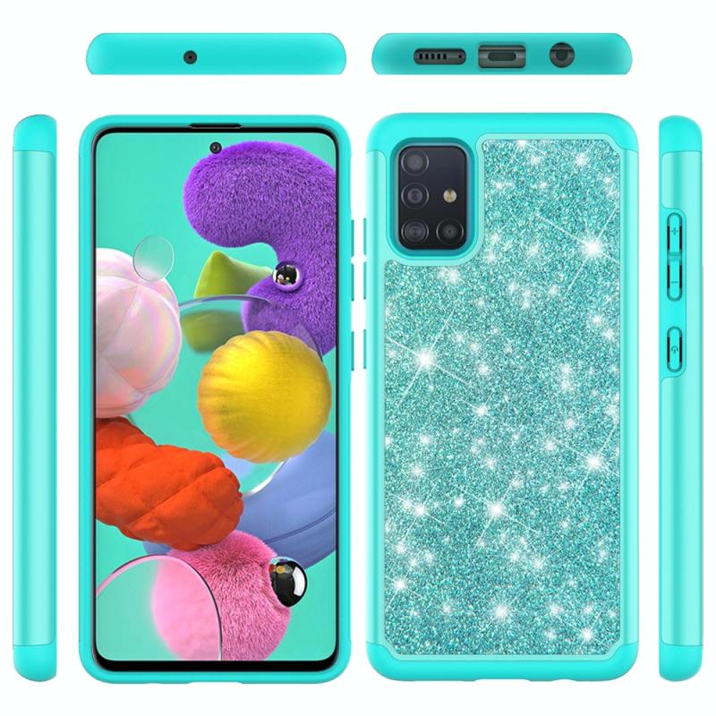 For Samsung Galaxy A51 Glitter Powder Contrast Skin Shockproof Silicone + PC Protective Case(Green)