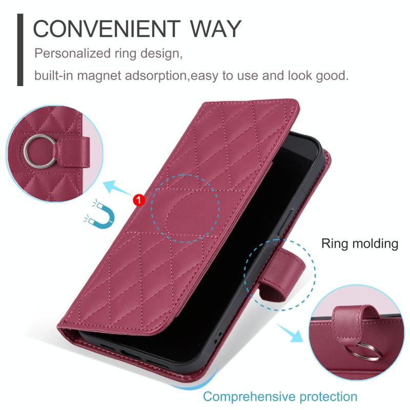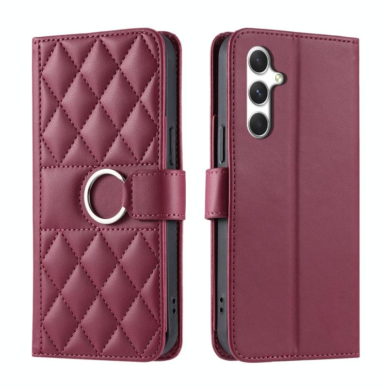 For Samsung Galaxy A55 5G Ring Buckle Rhombic Leather Phone Case(Red)