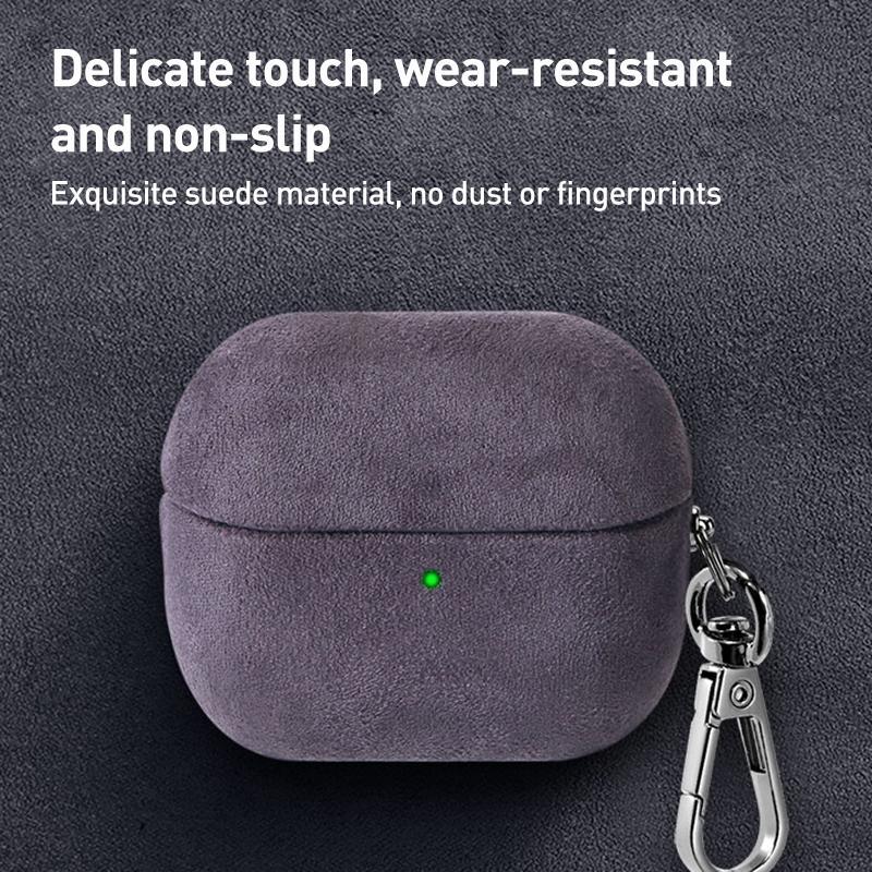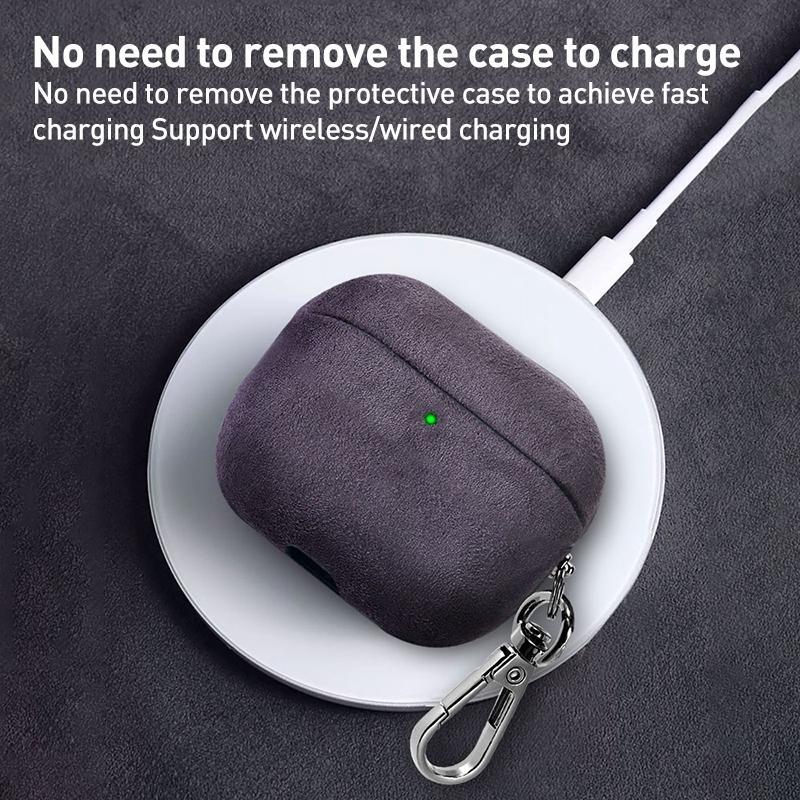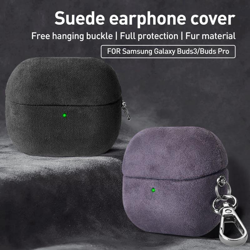 For Samsung Galaxy Buds3 / Buds3 Pro Turned Fur Leather Earphone Case with Hook(Blue)