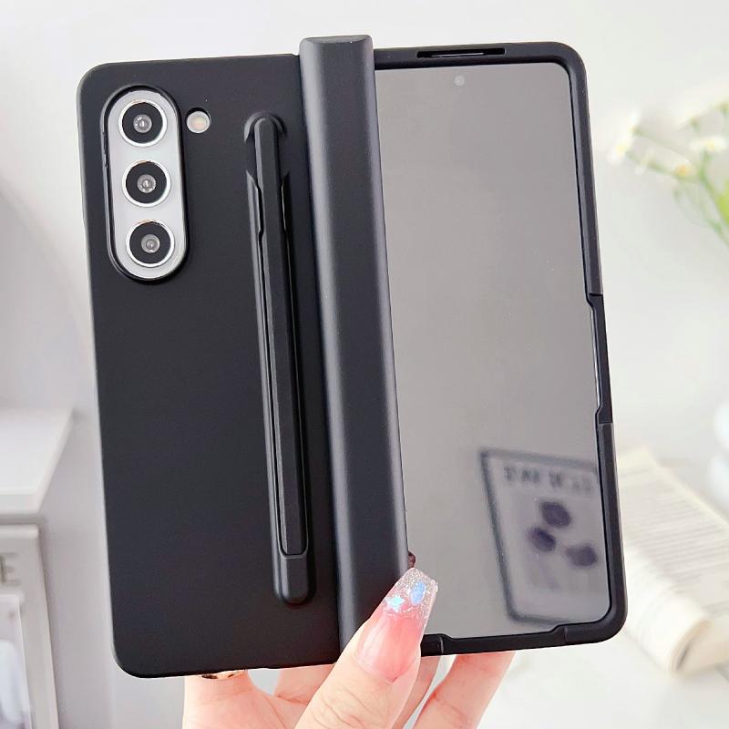 For Samsung Galaxy Fold5 3 in 1 Integrated PC Phone Case with Stylus(Black)