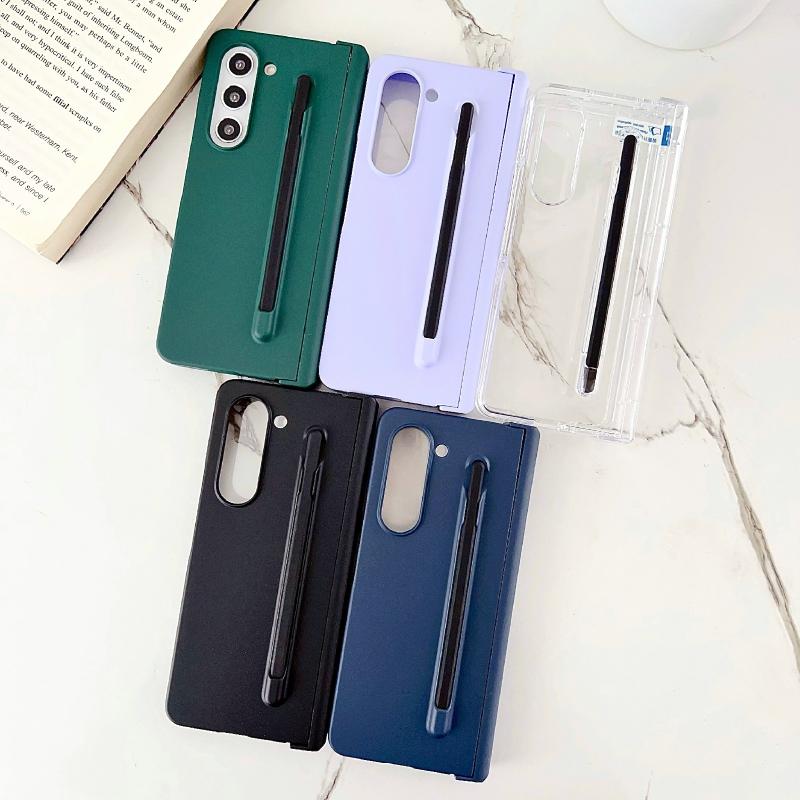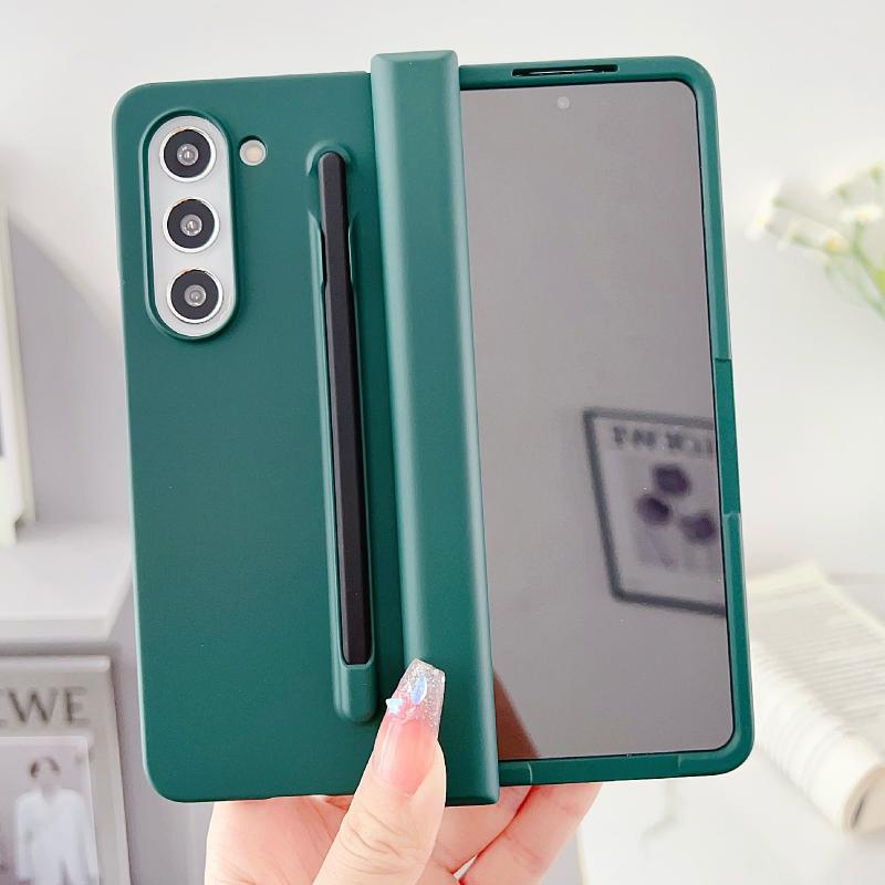 For Samsung Galaxy Fold5 3 in 1 Integrated PC Phone Case with Stylus(Forest Green)