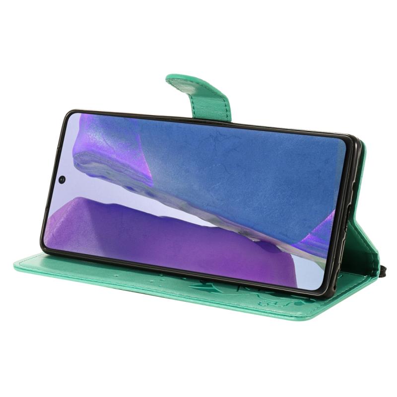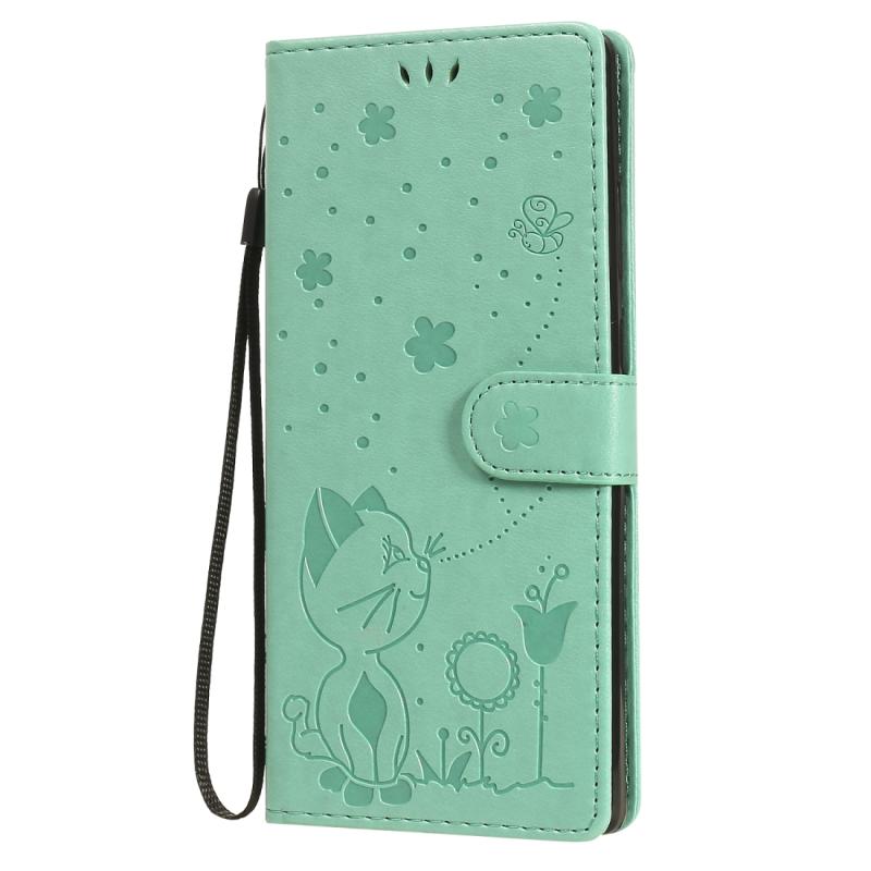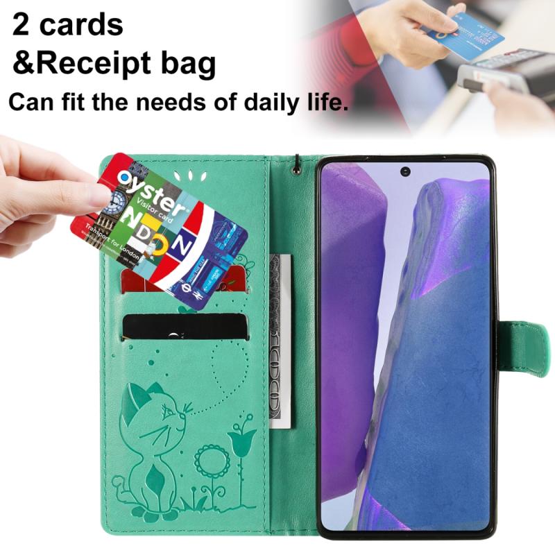 For Samsung Galaxy Note 20 Cat Bee Embossing Pattern Shockproof Horizontal Flip Leather Case with Holder & Card Slots & Wallet(Green)