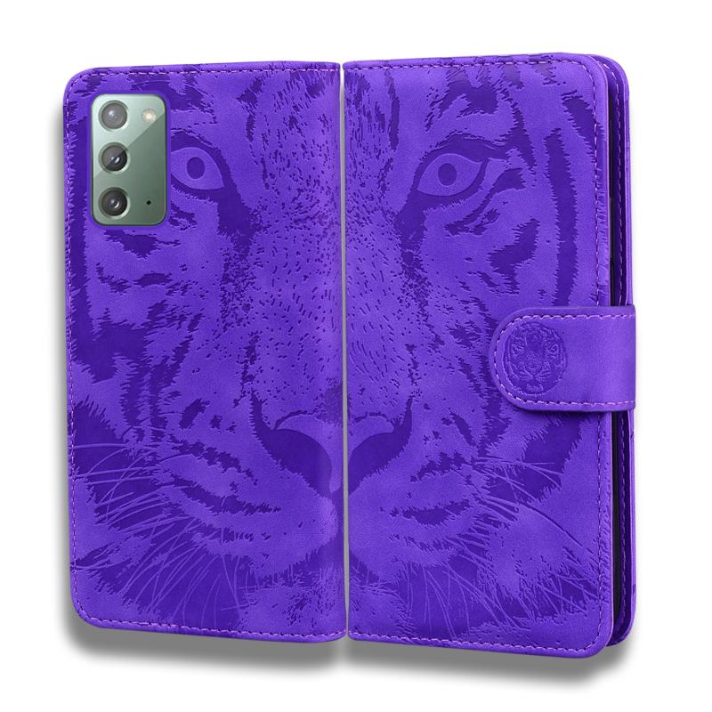 For Samsung Galaxy Note 20 Tiger Embossing Pattern Horizontal Flip Leather Case with Holder & Card Slots & Wallet(Purple)