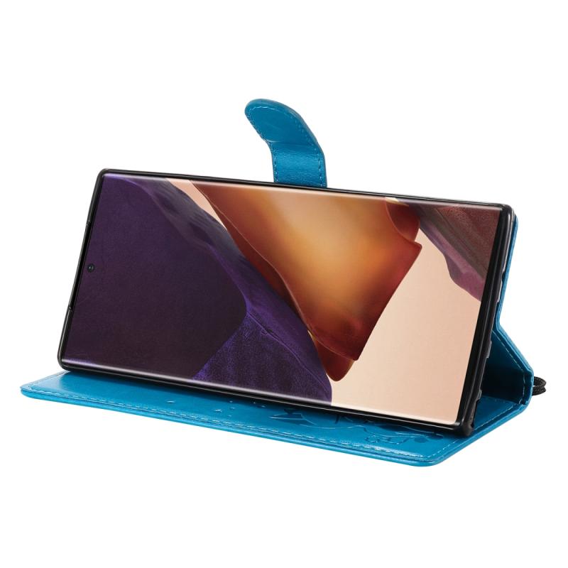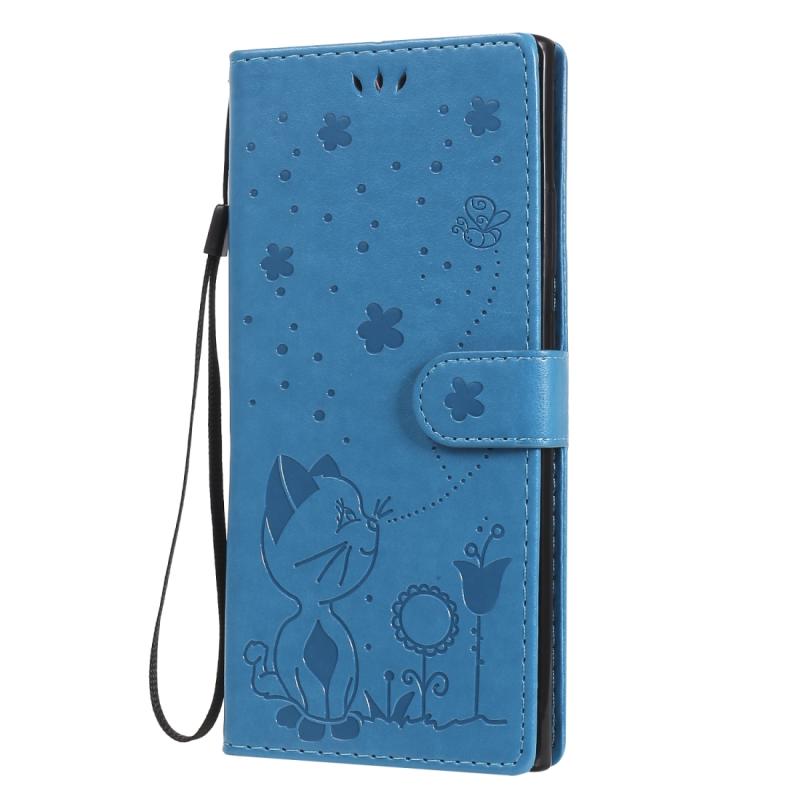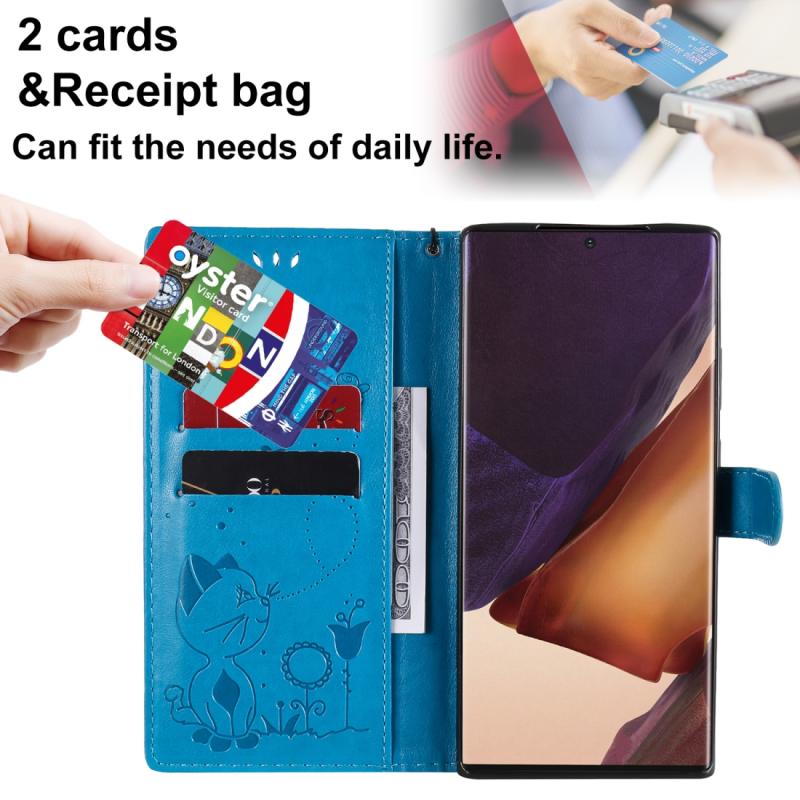 For Samsung Galaxy Note 20 Ultra Cat Bee Embossing Pattern Shockproof Horizontal Flip Leather Case with Holder & Card Slots & Wallet(Blue)
