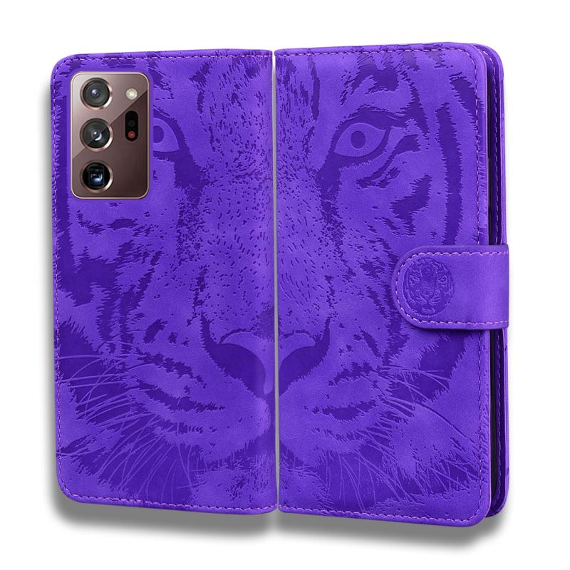 For Samsung Galaxy Note 20 Ultra Tiger Embossing Pattern Horizontal Flip Leather Case with Holder & Card Slots & Wallet(Purple)