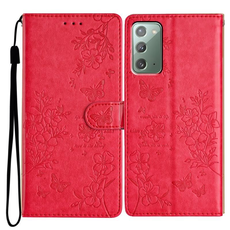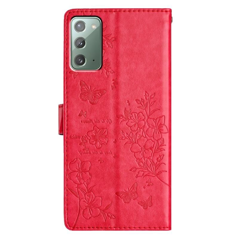 For Samsung Galaxy Note20 Butterflies and Flowers Leather Phone Case(Red)