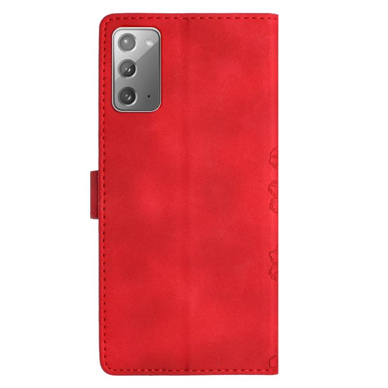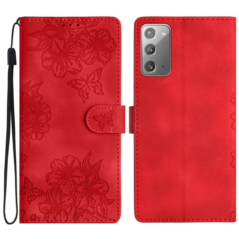 For Samsung Galaxy Note20 Cherry Blossom Butterfly Skin Feel Embossed PU Phone Case(Red)