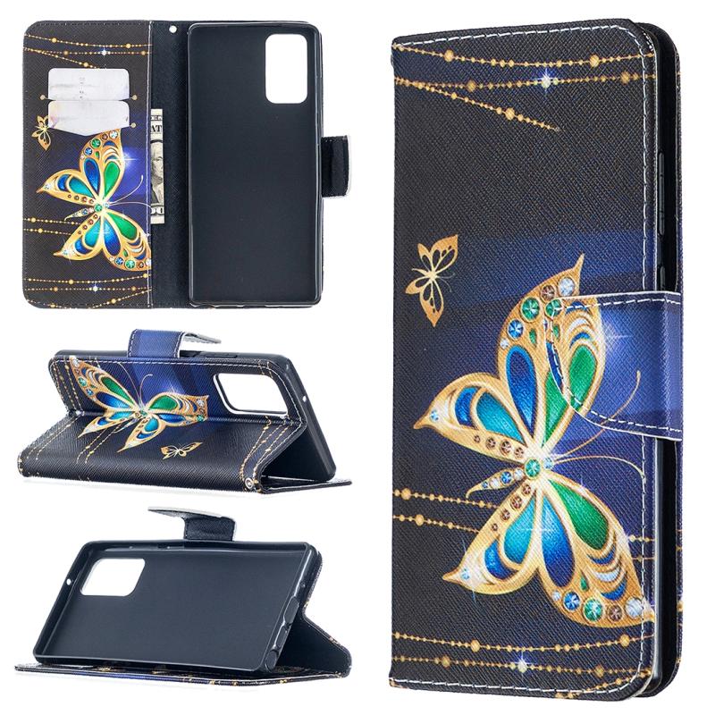 For Samsung Galaxy Note20 Colored Drawing Pattern Horizontal Flip Leather Case with Holder & Card Slots & Wallet(Big Butterfly)