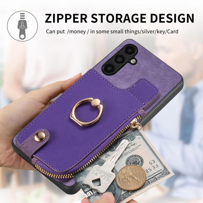 2. Zipper Wallet Function: The leather case is equipped with card slots for placing cards and a small amount of cash.