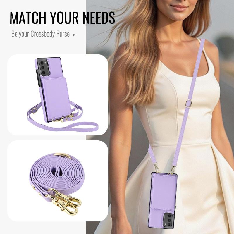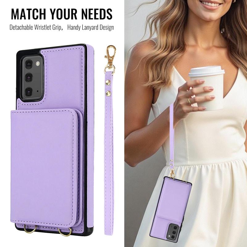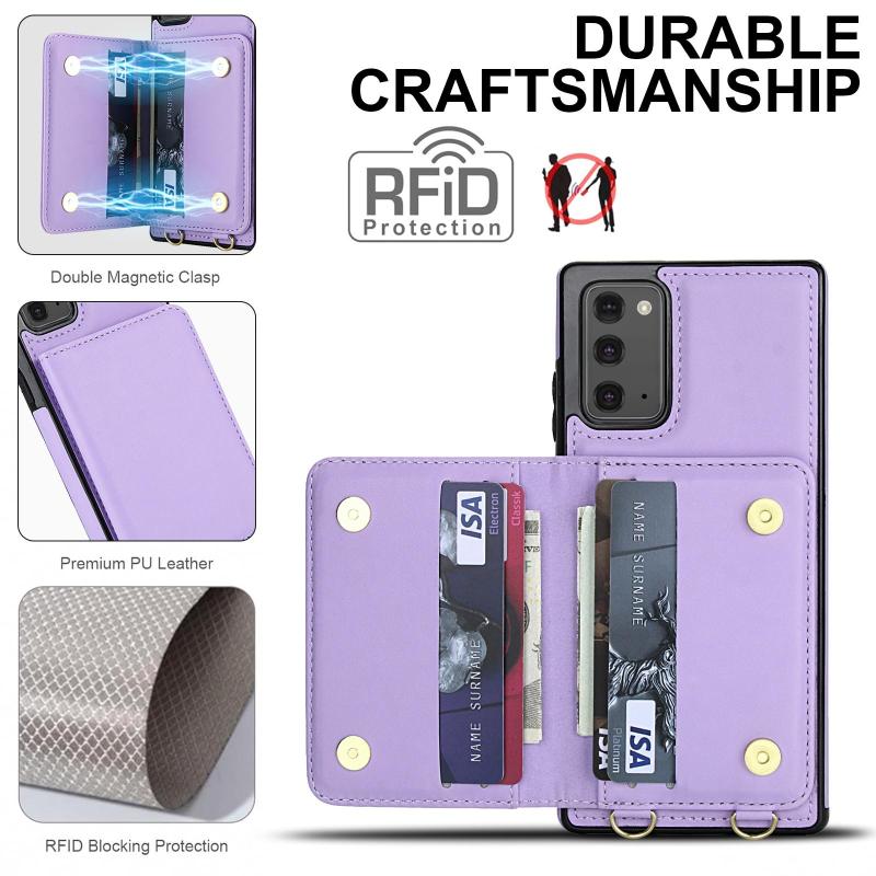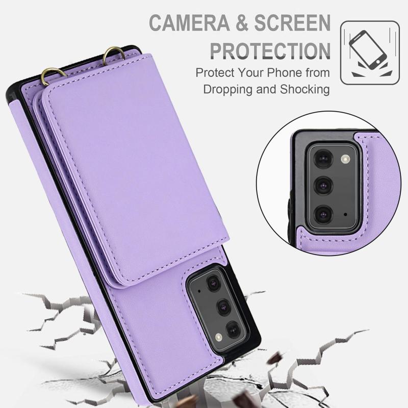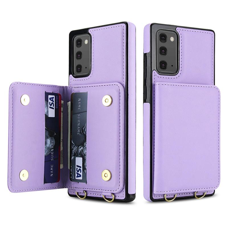 For Samsung Galaxy Note20 Crossbody Dual-buckle Wallet RFID Back Leather Phone Case(Light Purple)