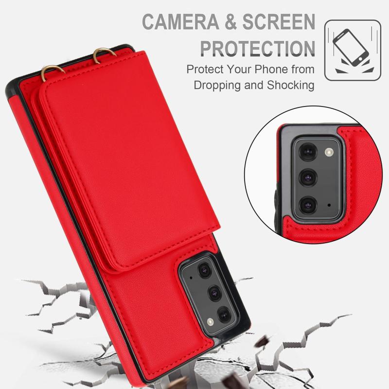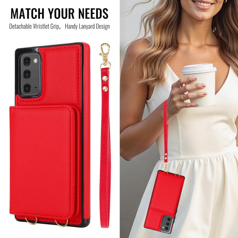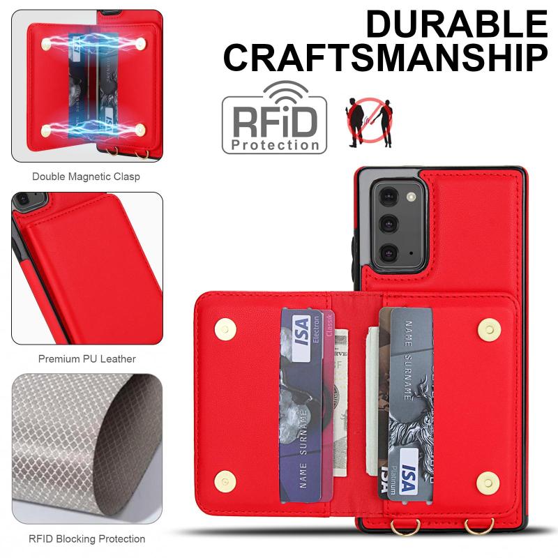 For Samsung Galaxy Note20 Crossbody Dual-buckle Wallet RFID Back Leather Phone Case(Red)