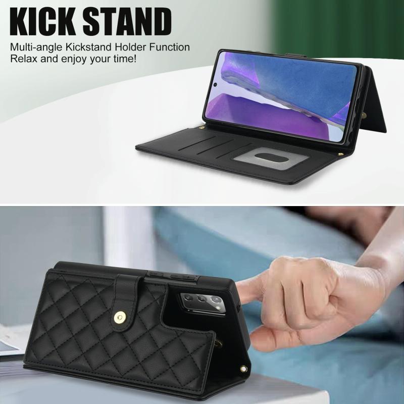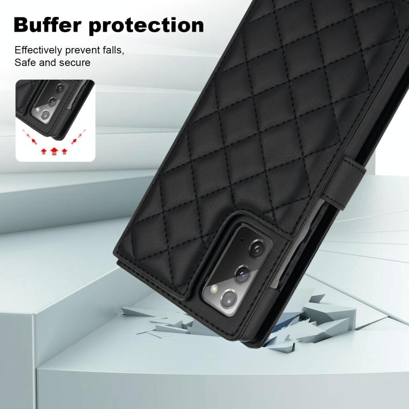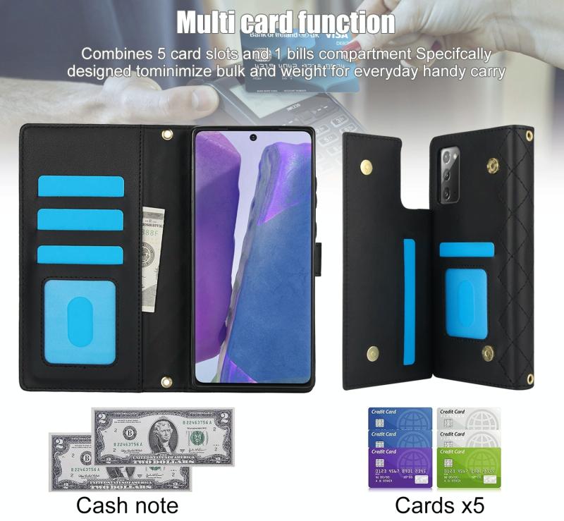 For Samsung Galaxy Note20 Crossbody Multifunction Rhombic Leather Phone Case(Black)