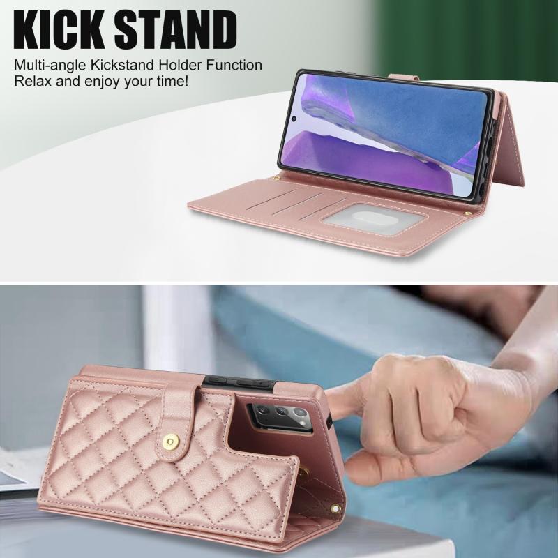 For Samsung Galaxy Note20 Crossbody Multifunction Rhombic Leather Phone Case(Rose Gold)