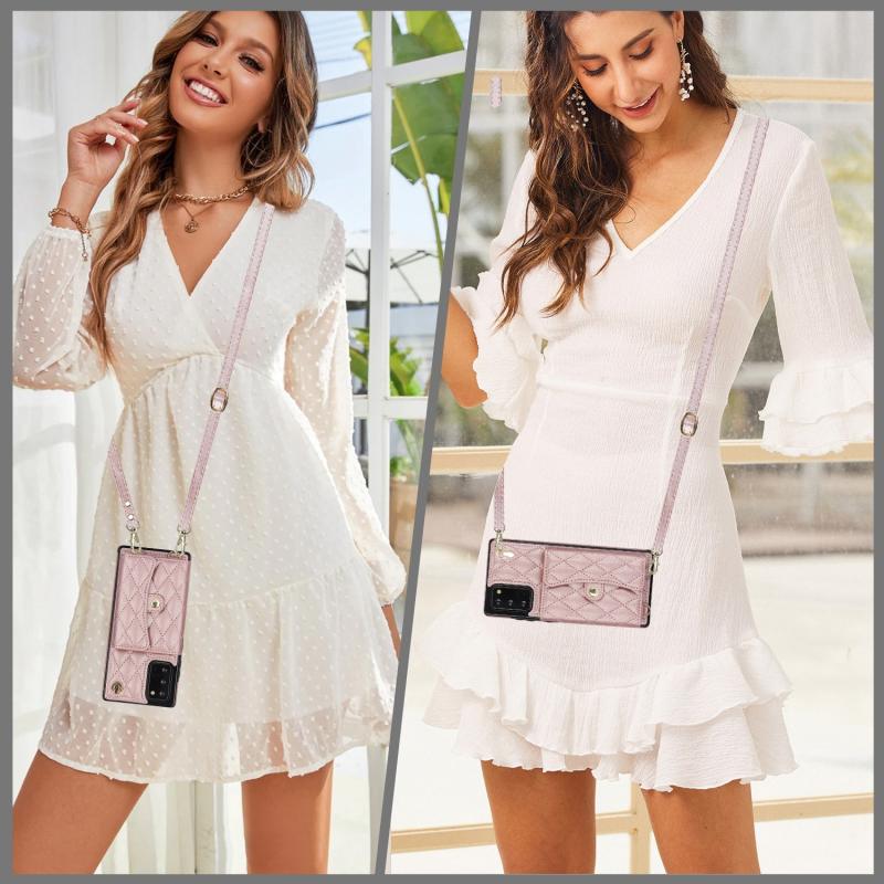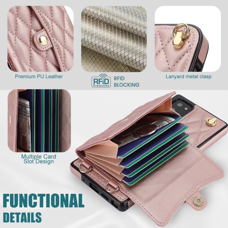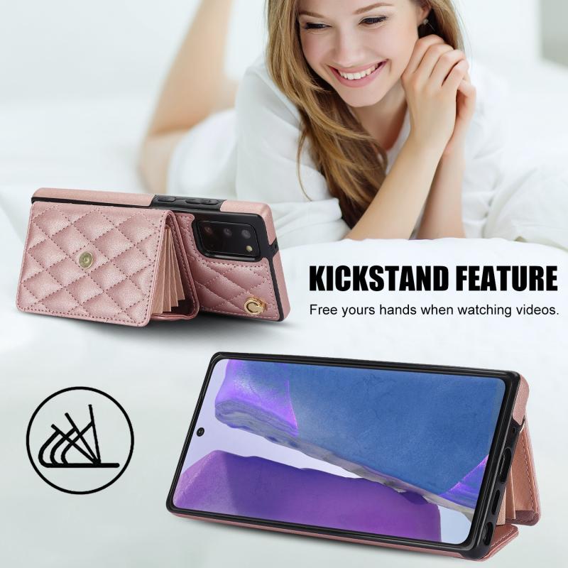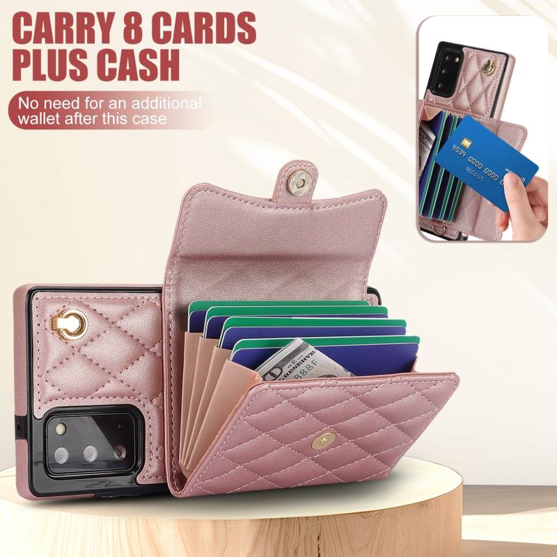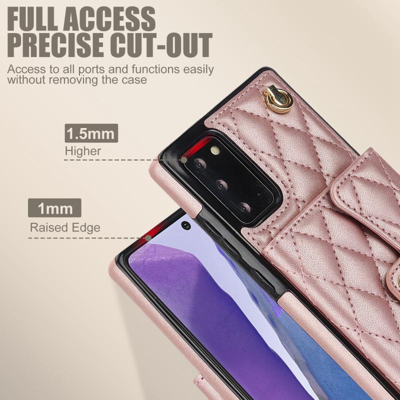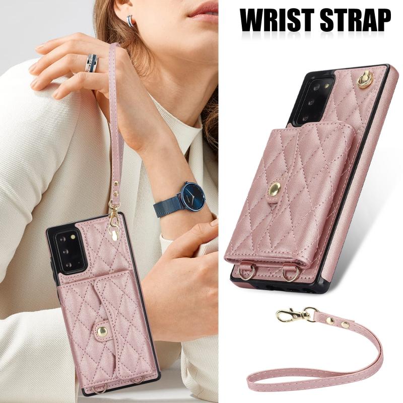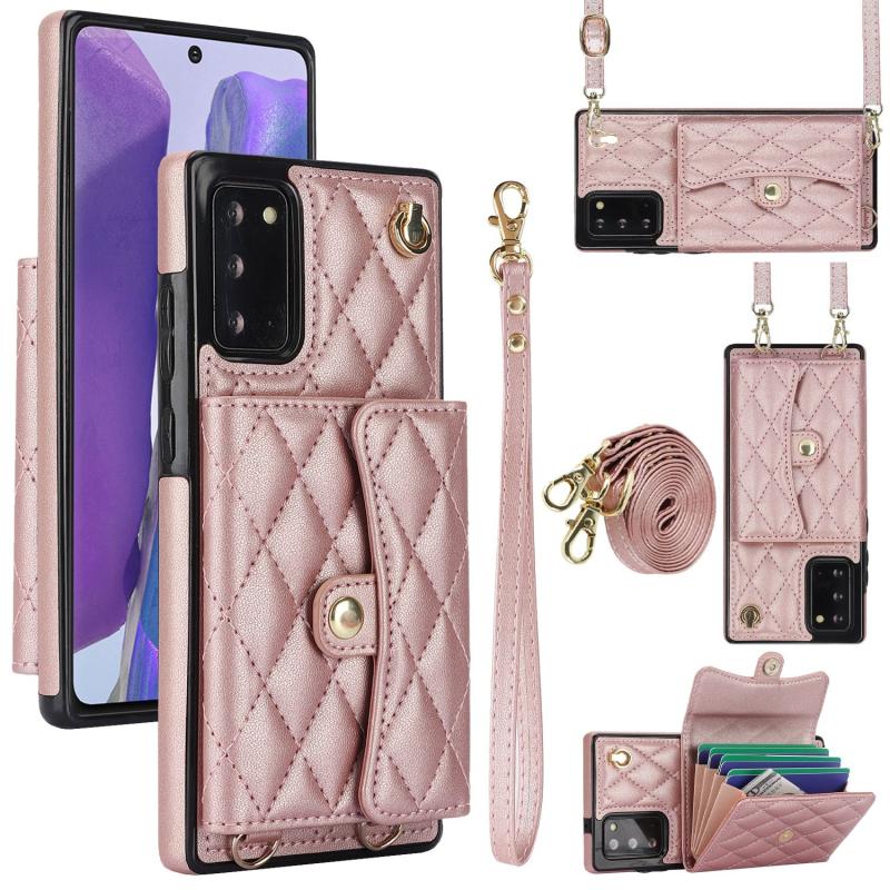For Samsung Galaxy Note20 Crossbody Rhombic Horizontal Wallet Leather Phone Case(Rose Gold)