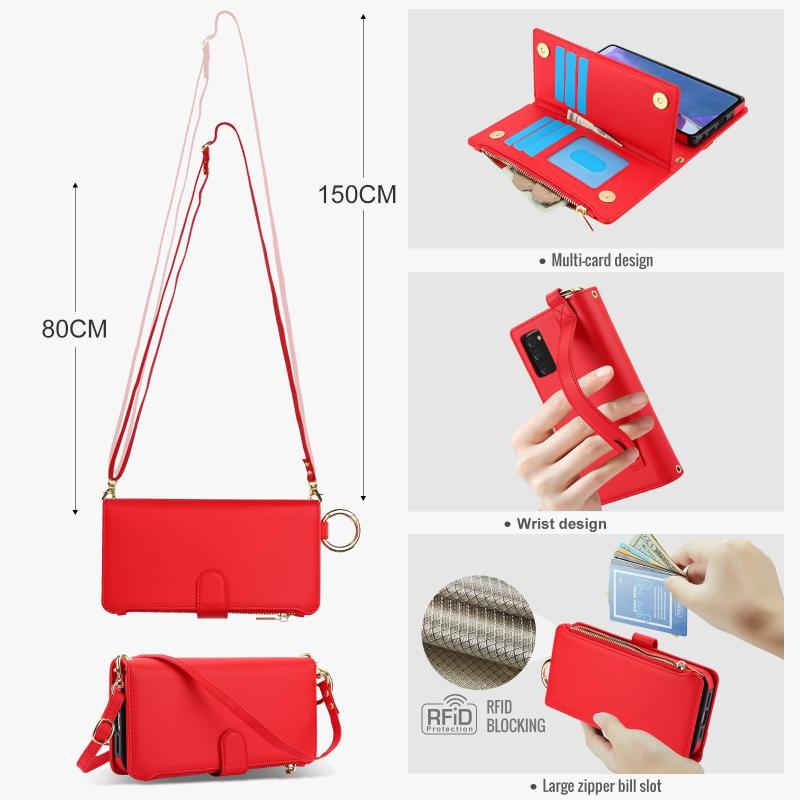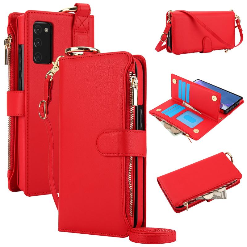 For Samsung Galaxy Note20 Crossbody Ring Multifunctional Wallet Leather Phone Case(Red)