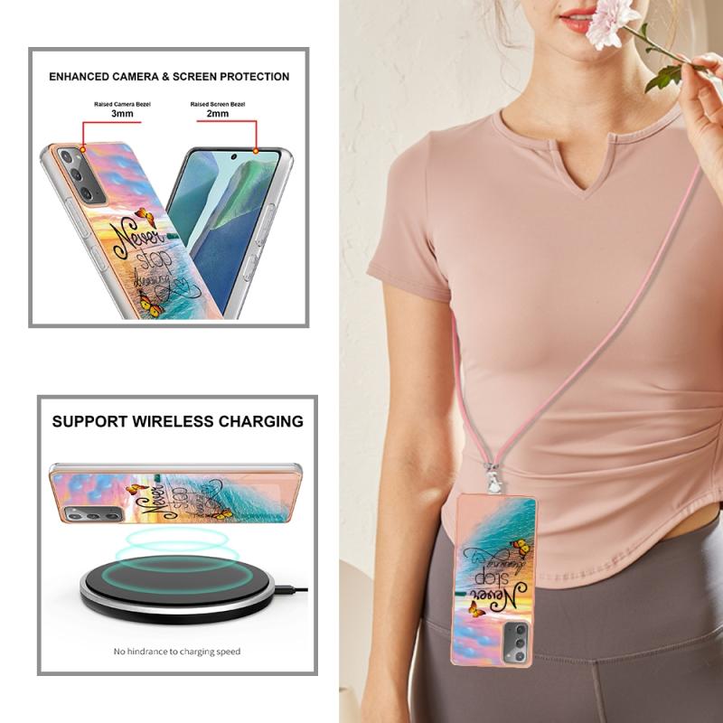 For Samsung Galaxy Note20 Electroplating IMD TPU Phone Case with Lanyard(Dream Butterfly)