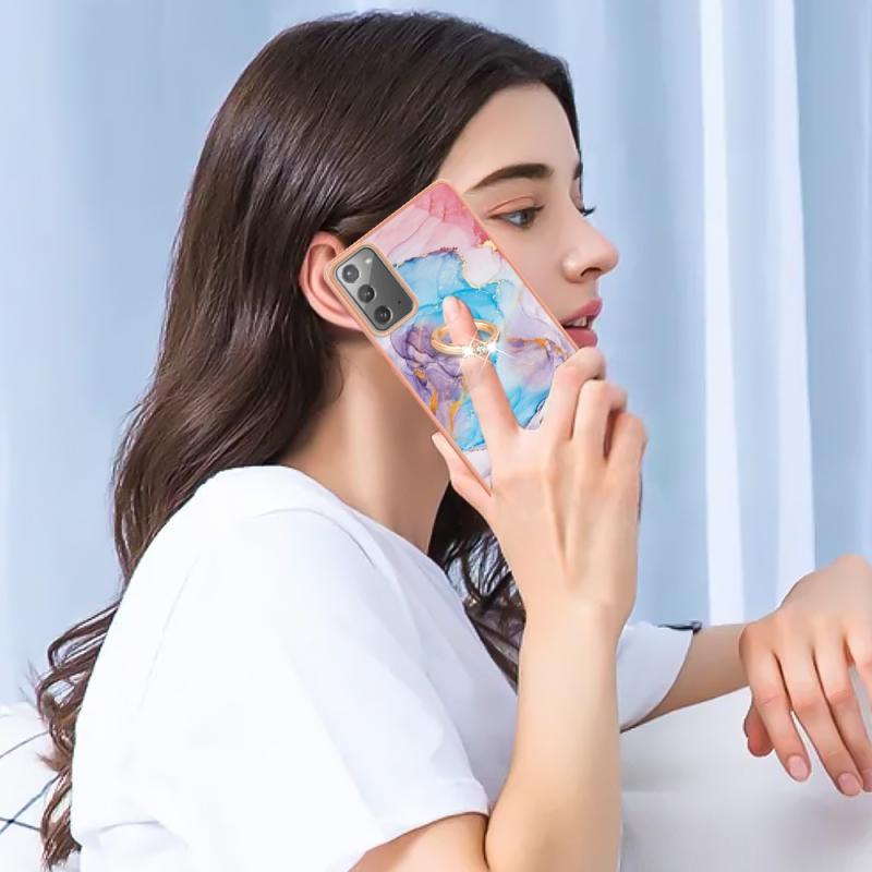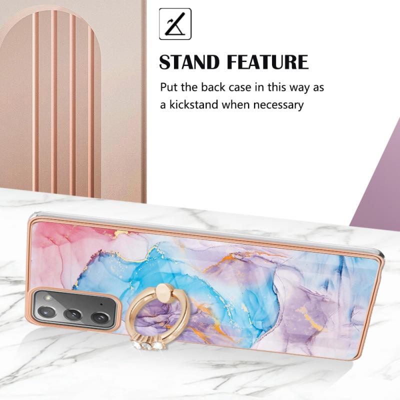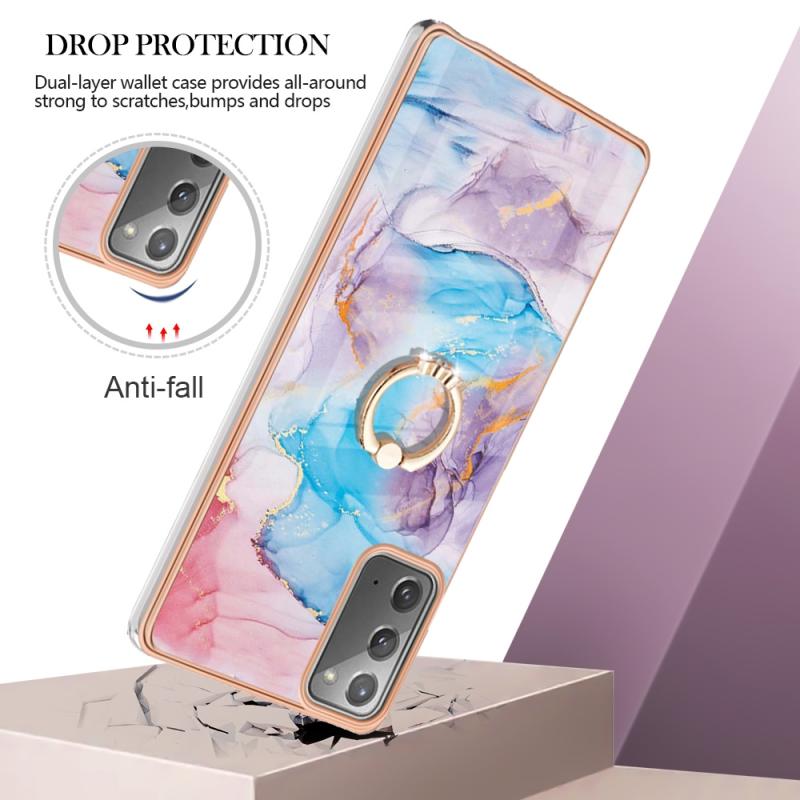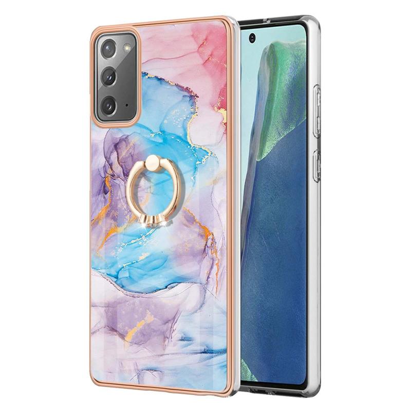 For Samsung Galaxy Note20 Electroplating IMD TPU Phone Case with Ring(Blue Marble)