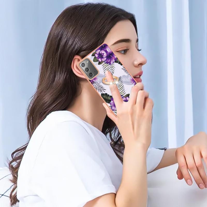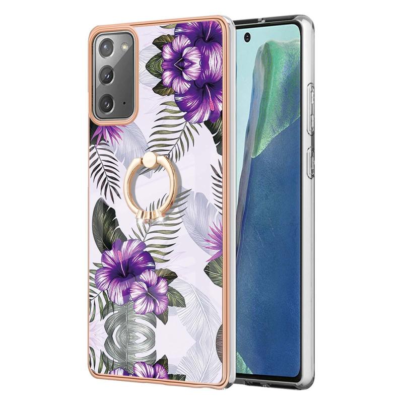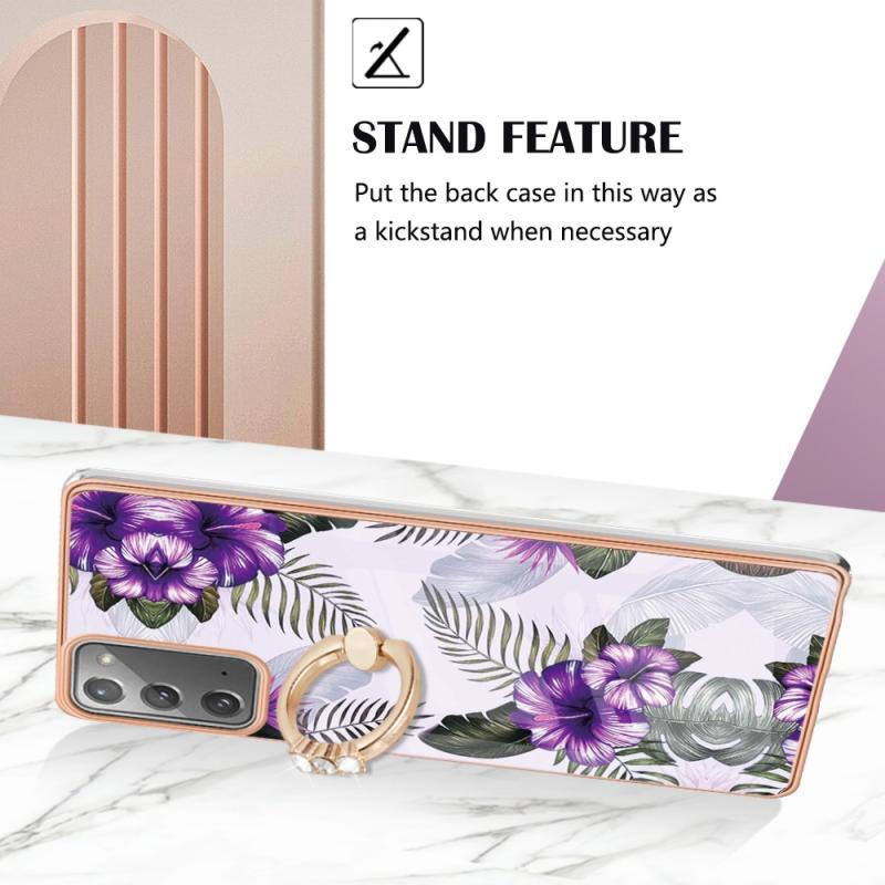 For Samsung Galaxy Note20 Electroplating IMD TPU Phone Case with Ring(Purple Flower)