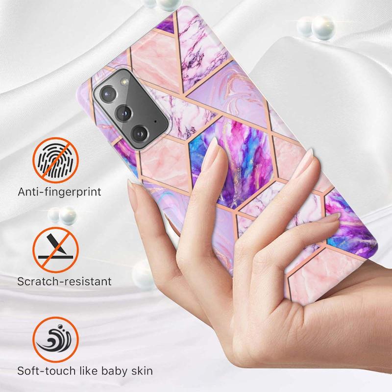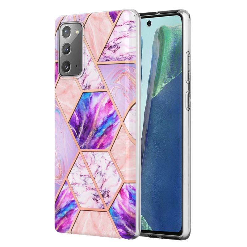 For Samsung Galaxy Note20 Electroplating Splicing Marble TPU Phone Case(Light Purple)
