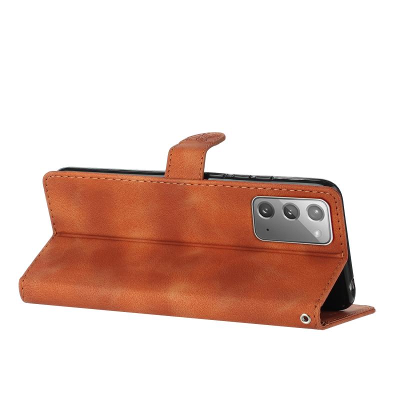 For Samsung Galaxy Note20 Flower Butterfly Embossing Pattern Leather Phone Case(Brown)