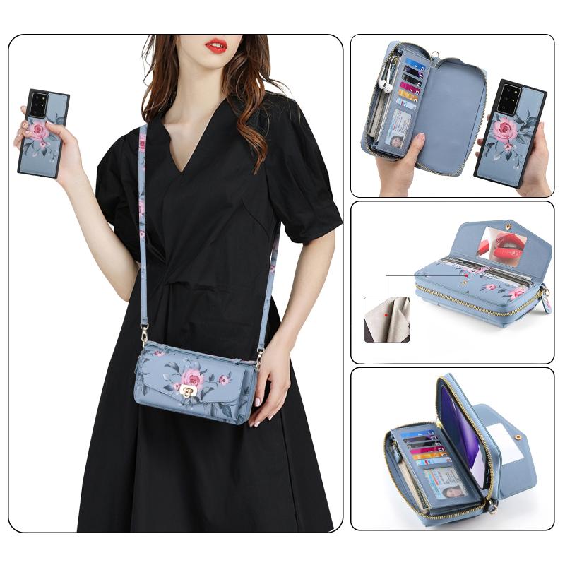 For Samsung Galaxy Note20 Flower Multi-functional Crossbody Zipper Wallet Leather Phone Case(Blue)