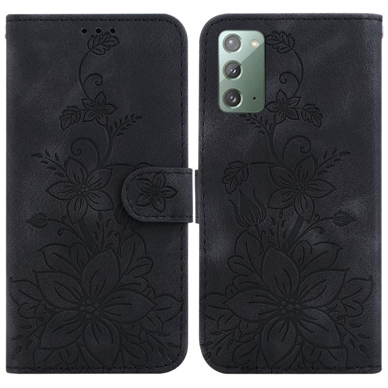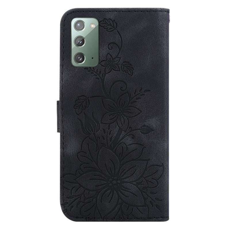 For Samsung Galaxy Note20 Lily Embossed Leather Phone Case(Black)