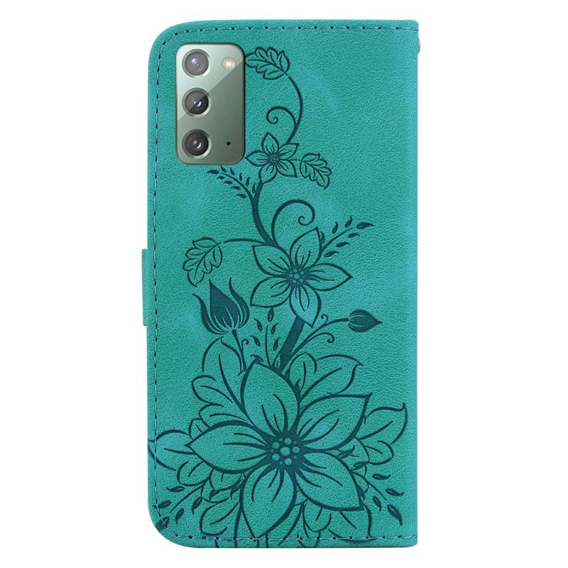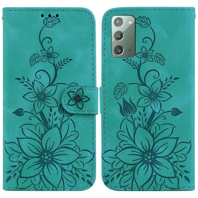 For Samsung Galaxy Note20 Lily Embossed Leather Phone Case(Green)