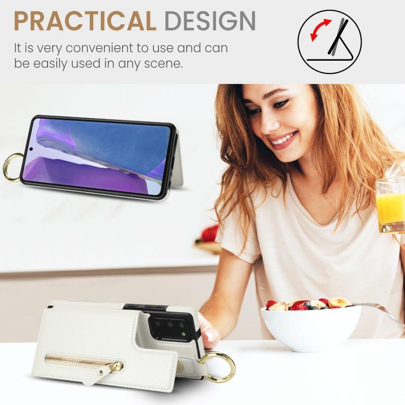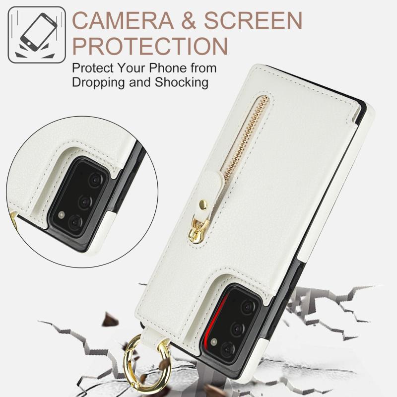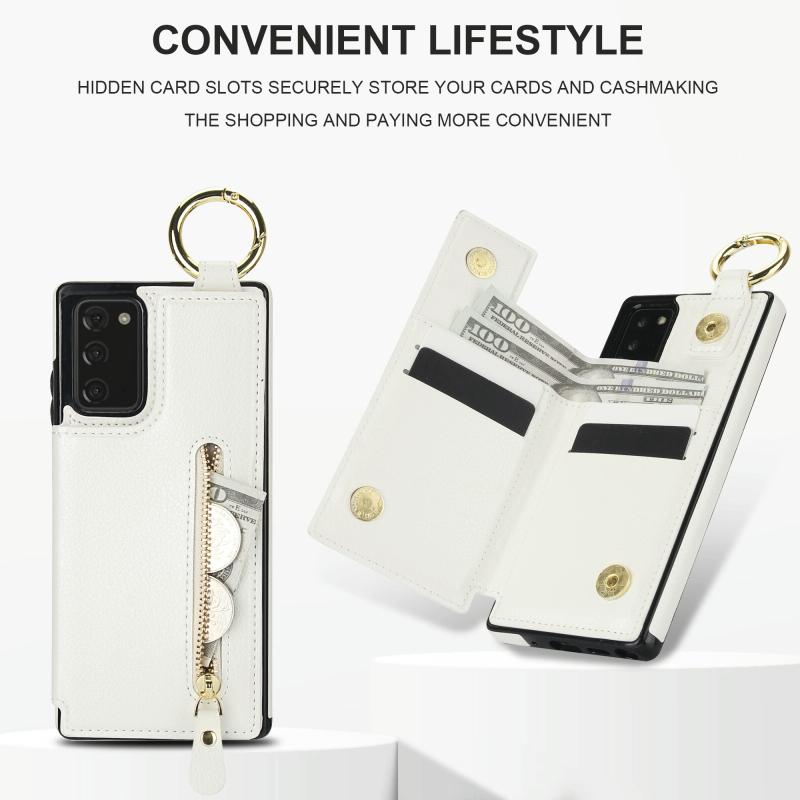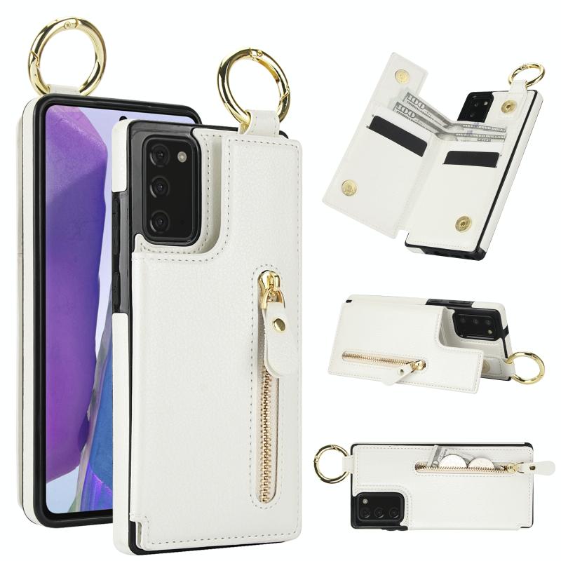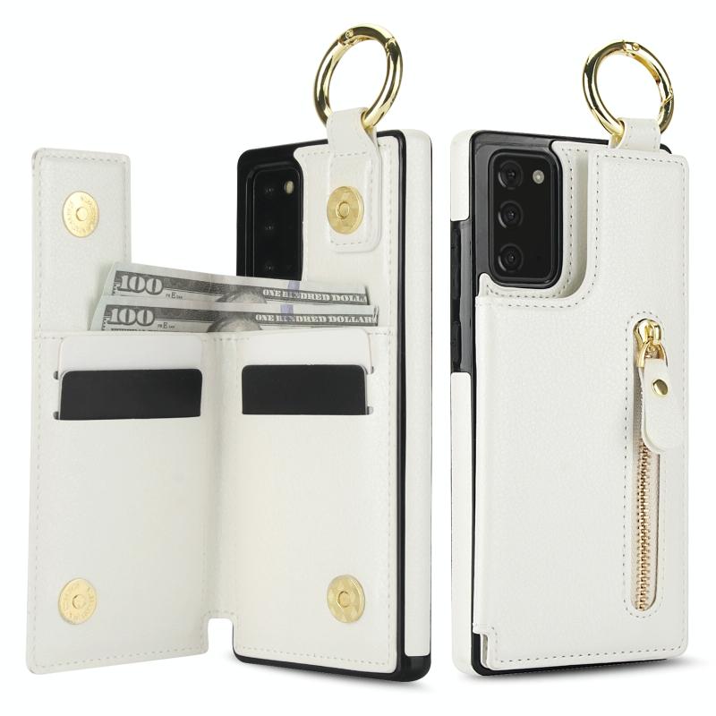 For Samsung Galaxy Note20 Litchi Texture Zipper Double Buckle Card Bag Phone Case(White)