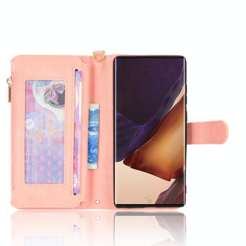 For Samsung Galaxy Note20 Litchi Texture Zipper Leather Phone Case(Pink)