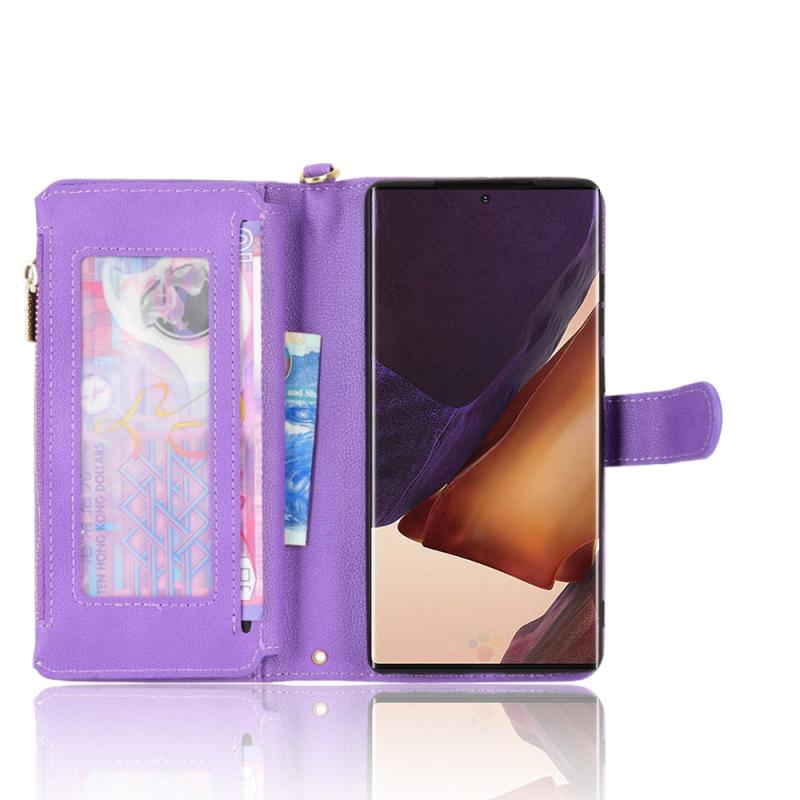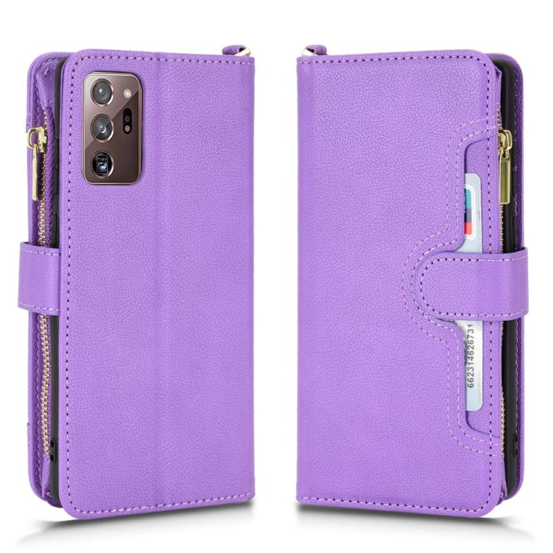 For Samsung Galaxy Note20 Litchi Texture Zipper Leather Phone Case(Purple)