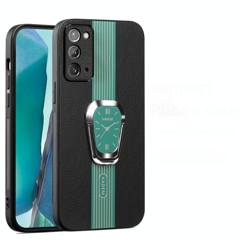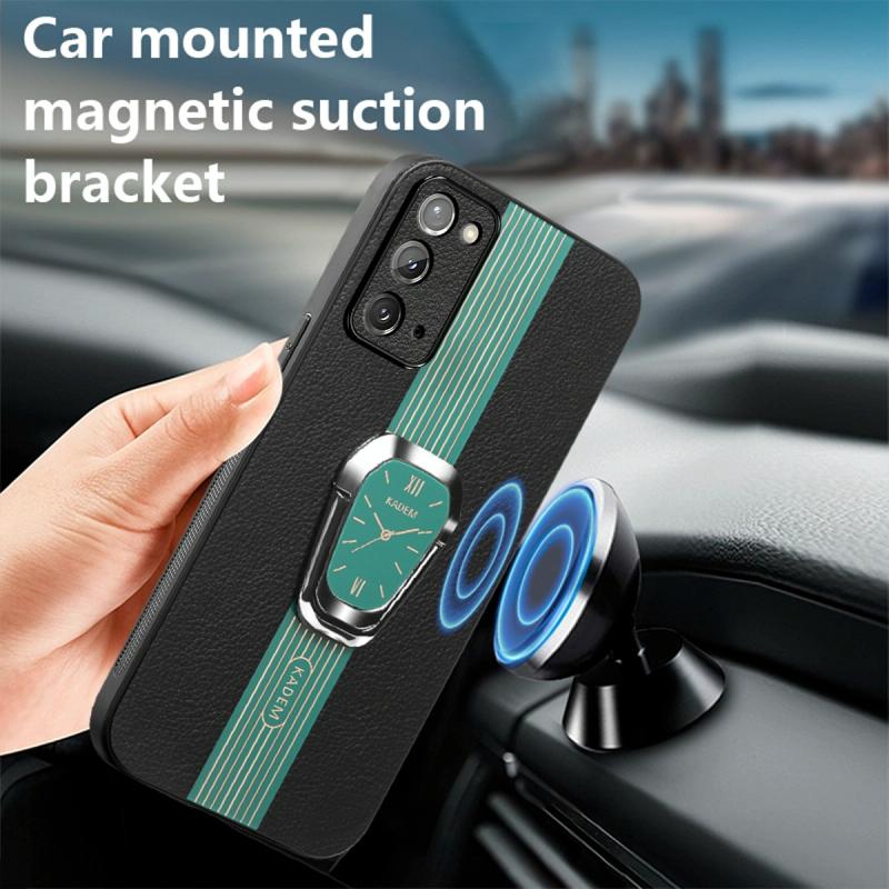 For Samsung Galaxy Note20 Magnetic Litchi Leather Back Phone Case with Holder(Green)
