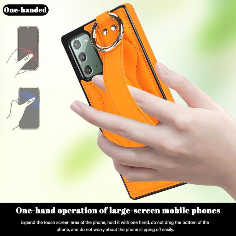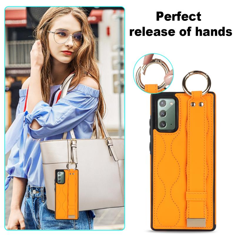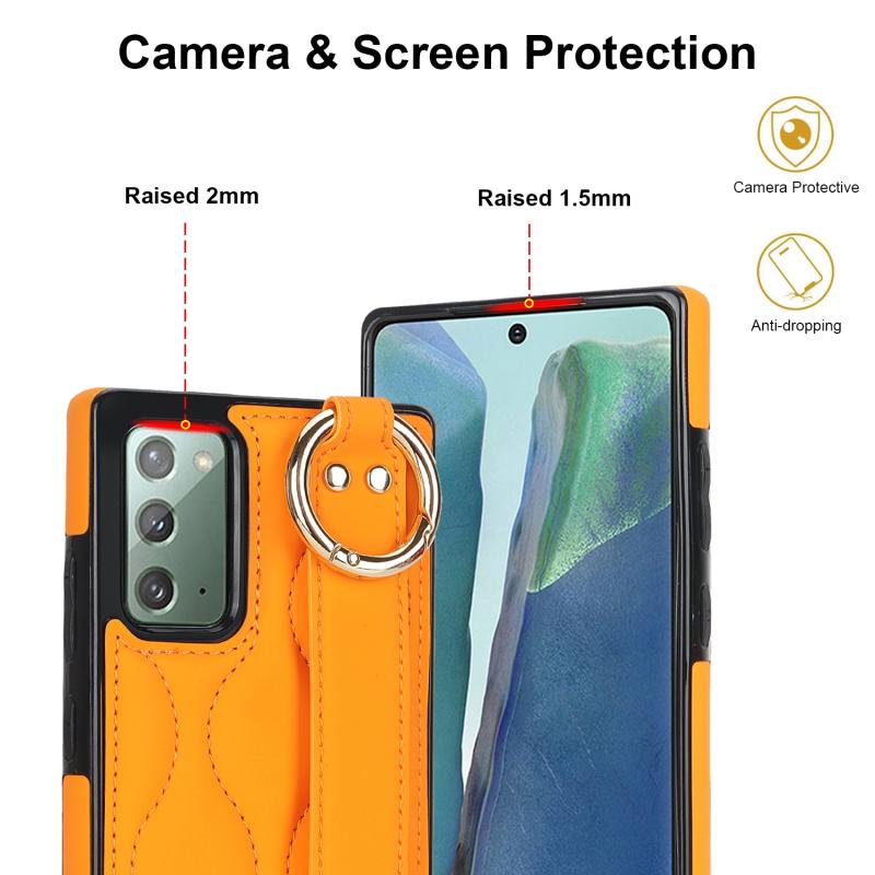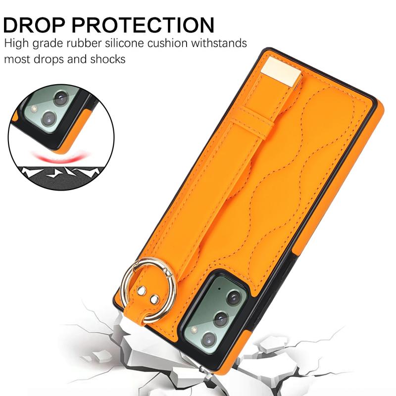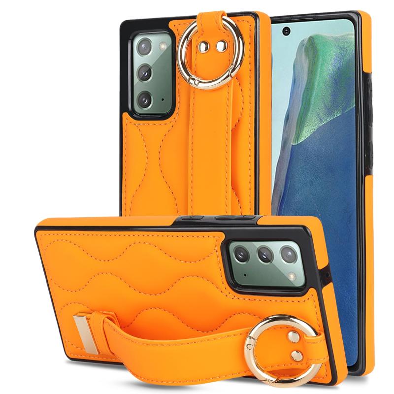For Samsung Galaxy Note20 Non-slip Full Coverage Ring PU Phone Case with Wristband(Orange)