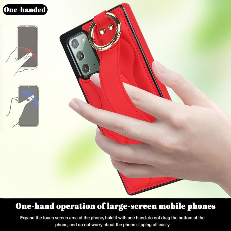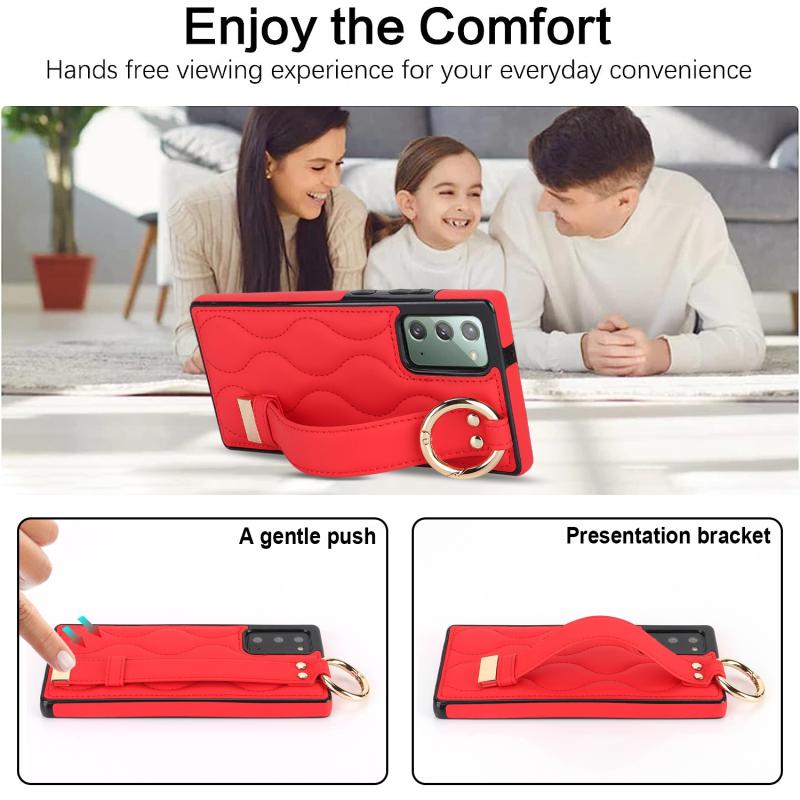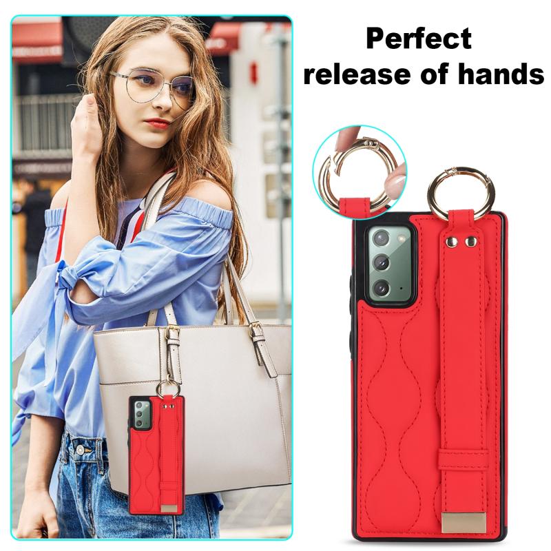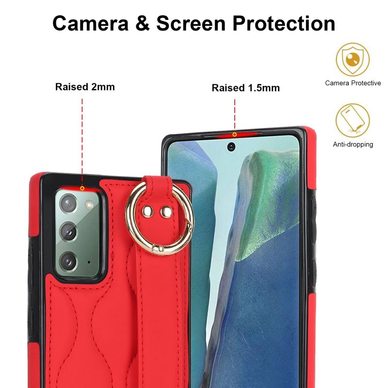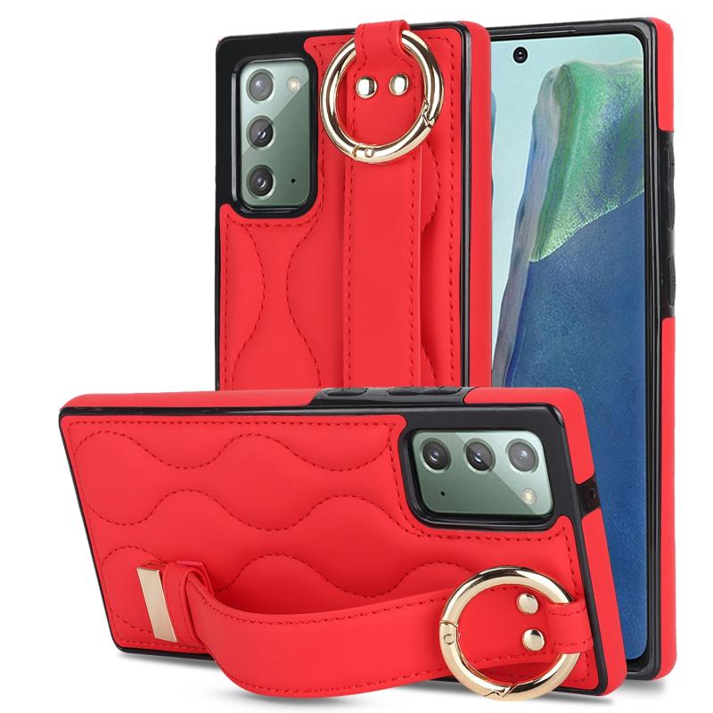 For Samsung Galaxy Note20 Non-slip Full Coverage Ring PU Phone Case with Wristband(Red)