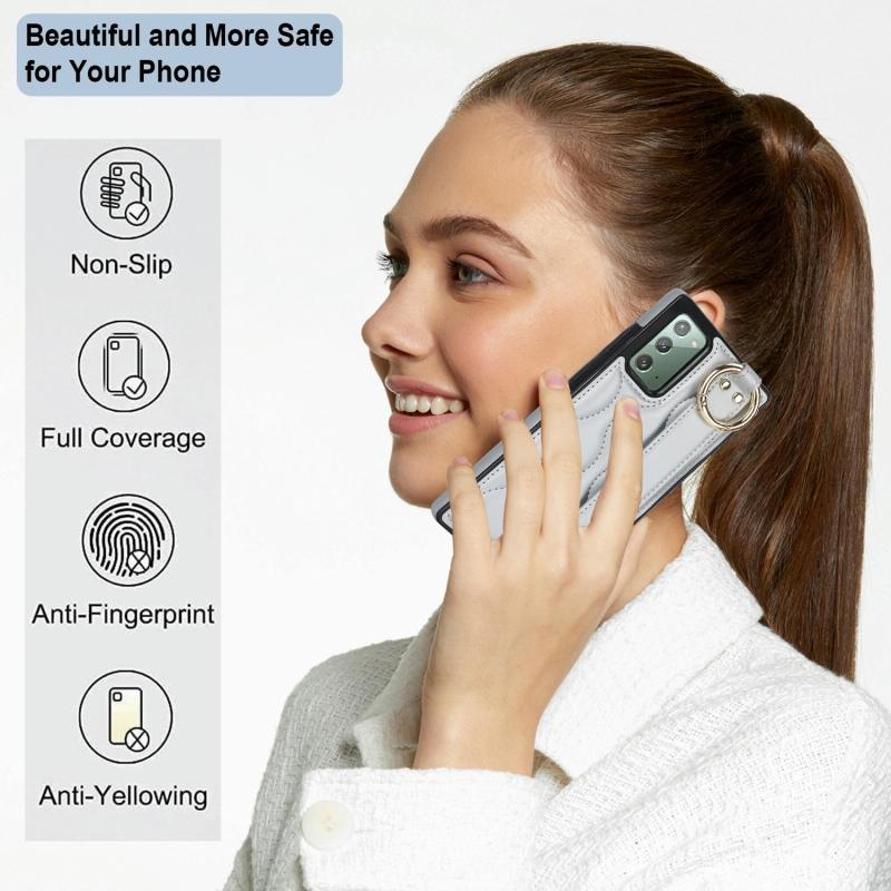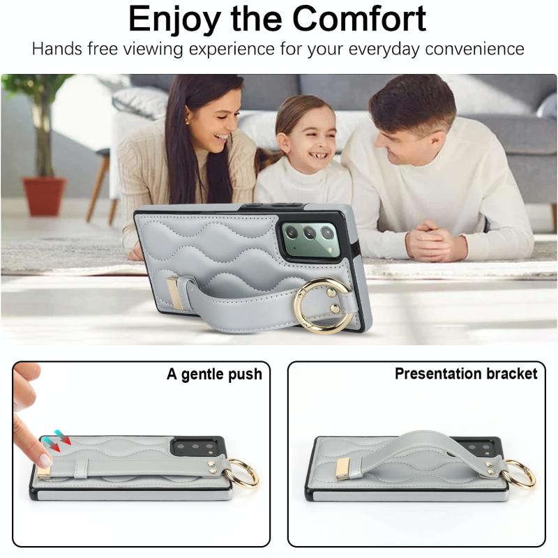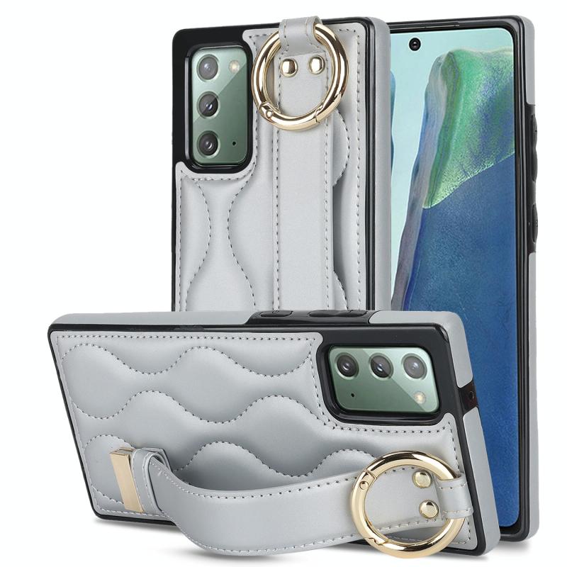 For Samsung Galaxy Note20 Non-slip Full Coverage Ring PU Phone Case with Wristband(Silver)