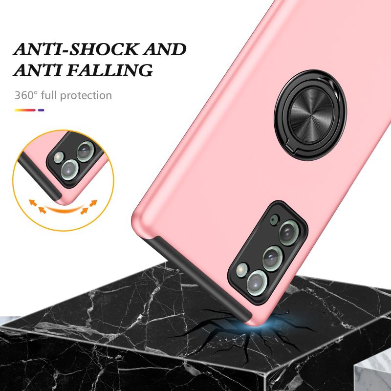 For Samsung Galaxy Note20 PC + TPU Shockproof Magnetic Protective Case with Invisible Ring Holder(Rose Gold)