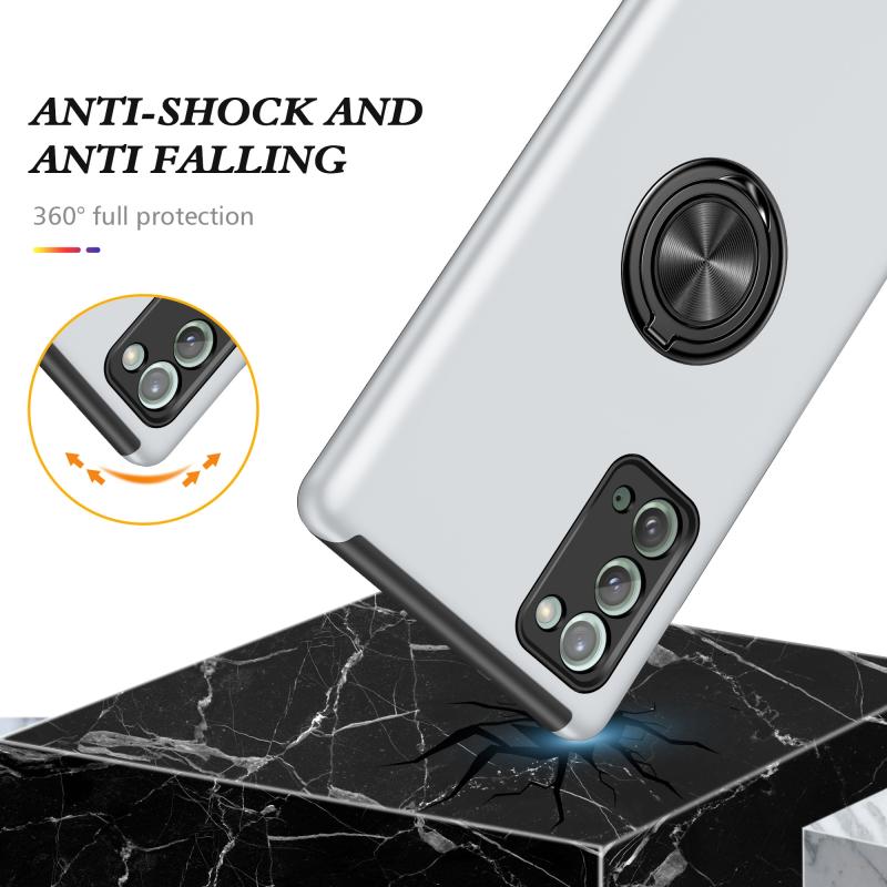 For Samsung Galaxy Note20 PC + TPU Shockproof Magnetic Protective Case with Invisible Ring Holder(Silver)