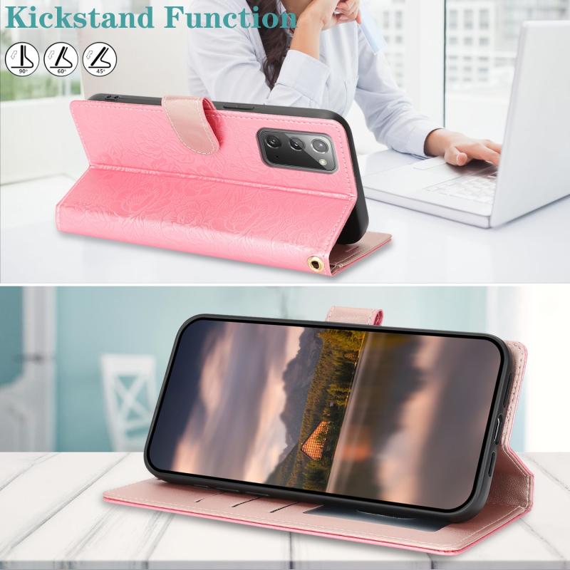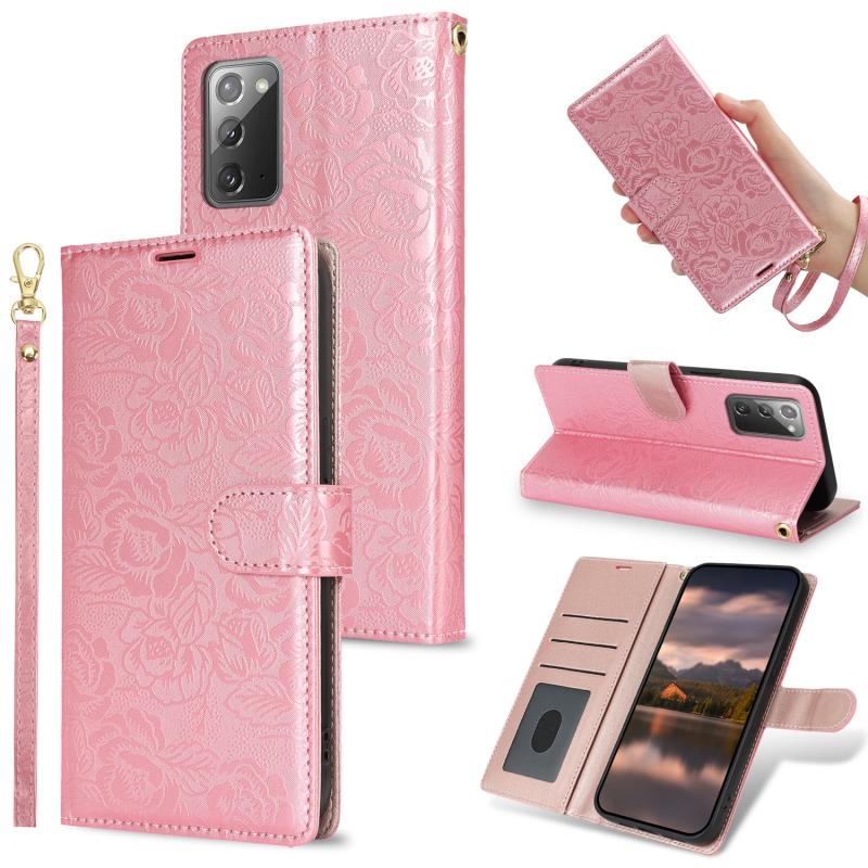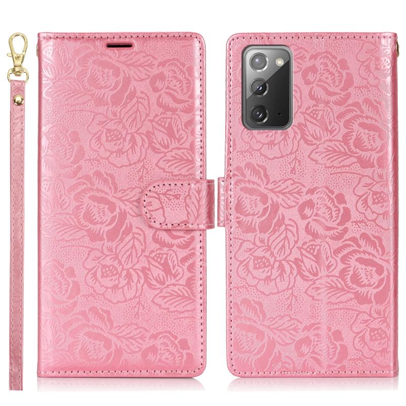 For Samsung Galaxy Note20 Peony Flowers Imprint Leather Phone Case(Pink)