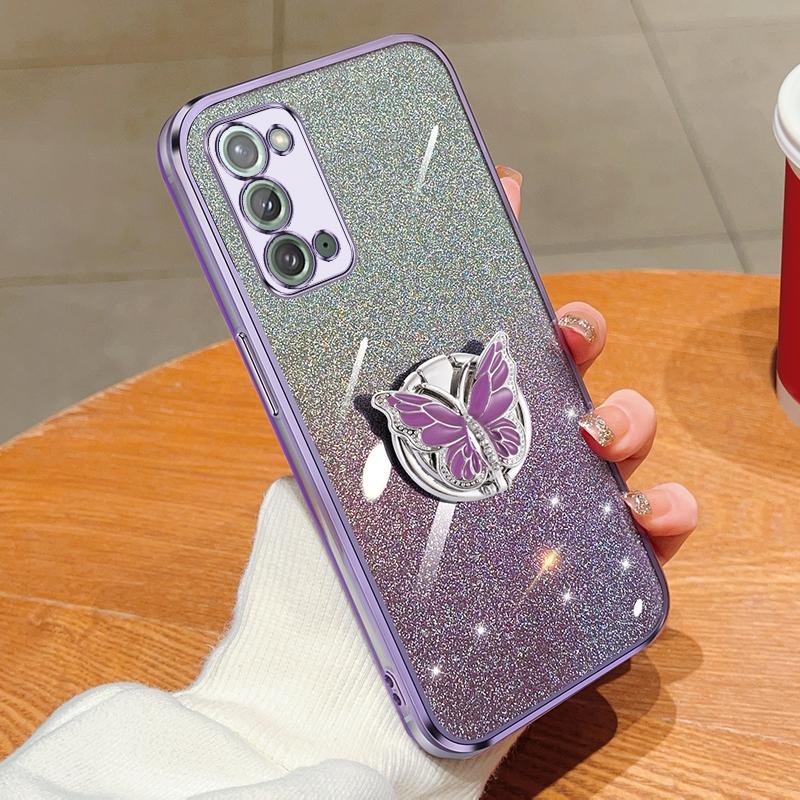 For Samsung Galaxy Note20 Plated Gradient Glitter Butterfly Holder TPU Phone Case(Purple)