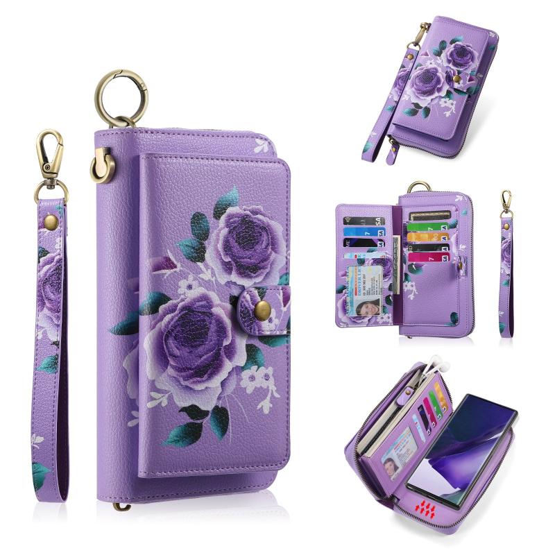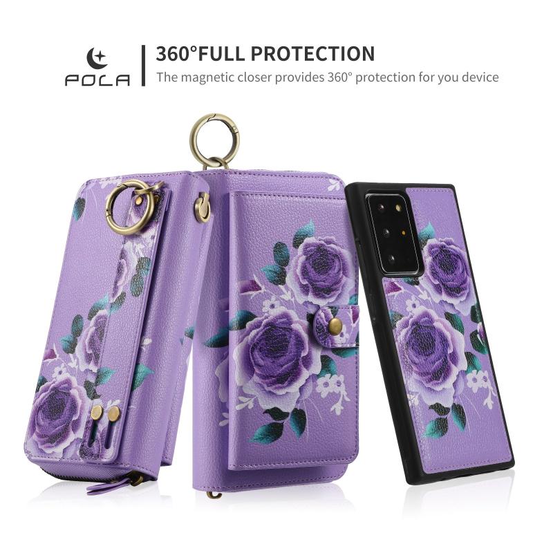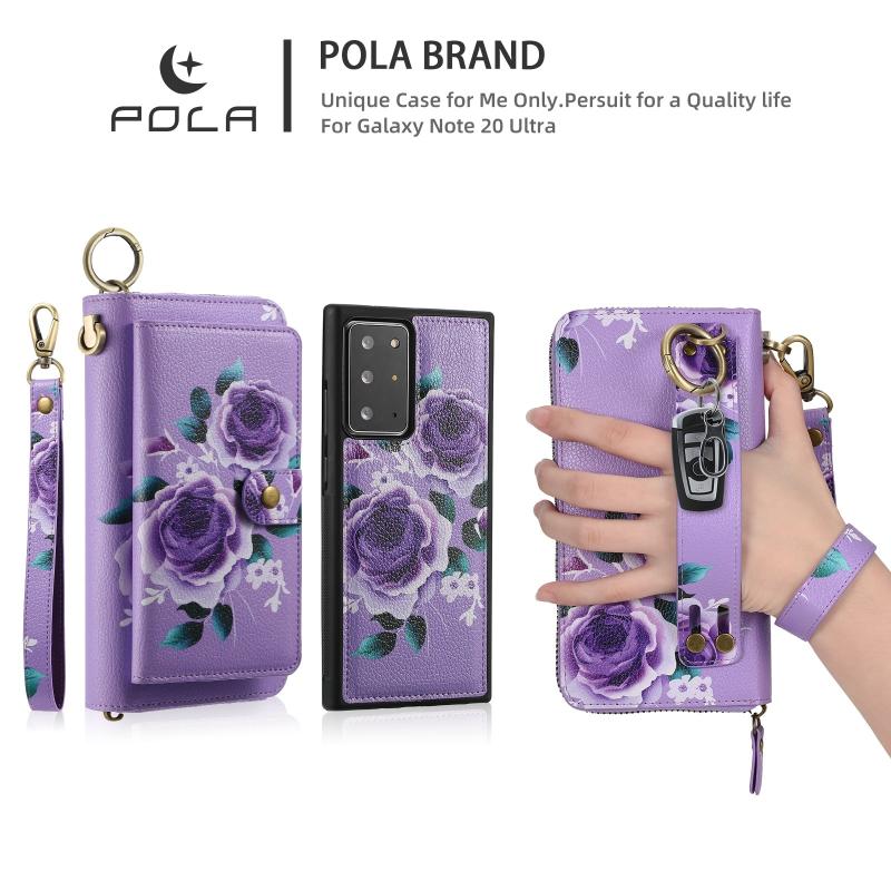 For Samsung Galaxy Note20 POLA Flower Multi-functional Zipper Wallet Leather Phone Case(Purple)