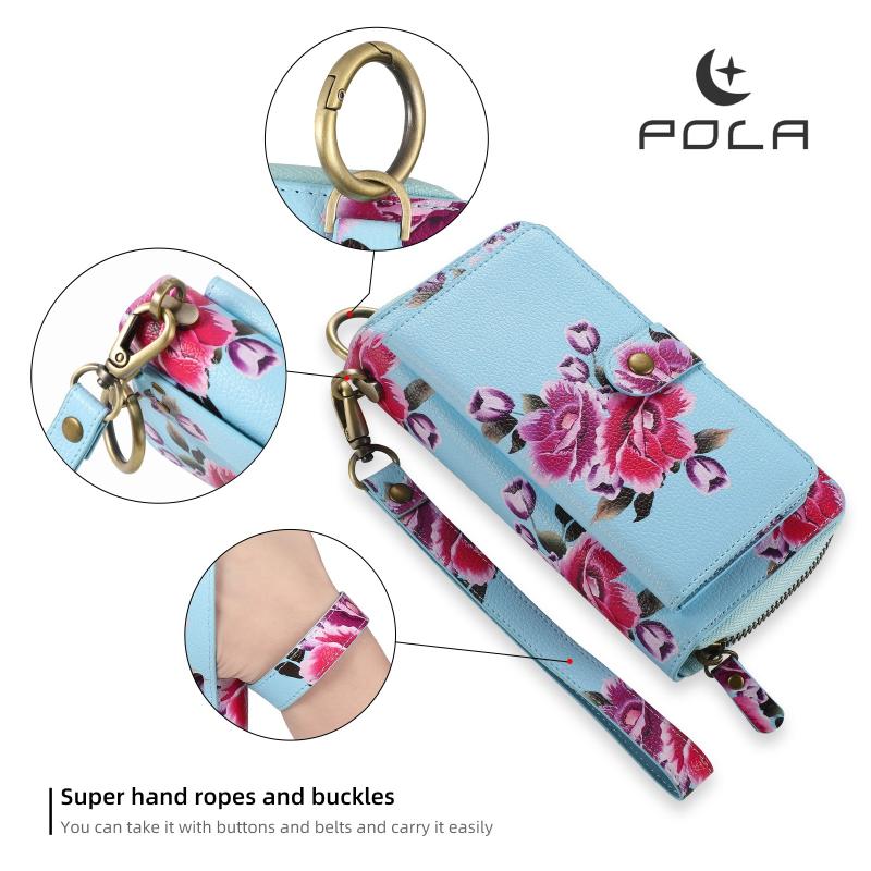 For Samsung Galaxy Note20 POLA Flower Multi-functional Zipper Wallet Leather Phone Case(Sky Blue)