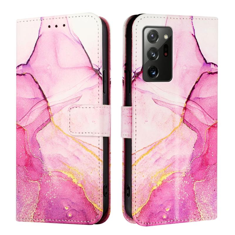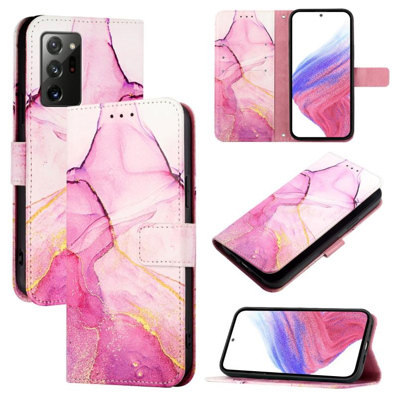 For Samsung Galaxy Note20 PT003 Marble Pattern Flip Leather Phone Case(Pink Purple Gold)