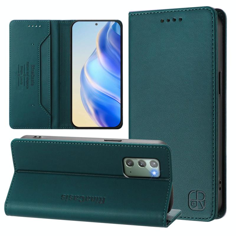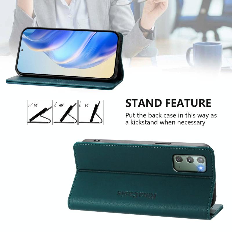 For Samsung Galaxy Note20 RC01 Dual-Folded Magnetic Suction RFID Leather Phone Case(Dark Green)