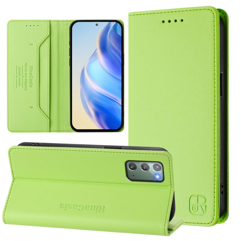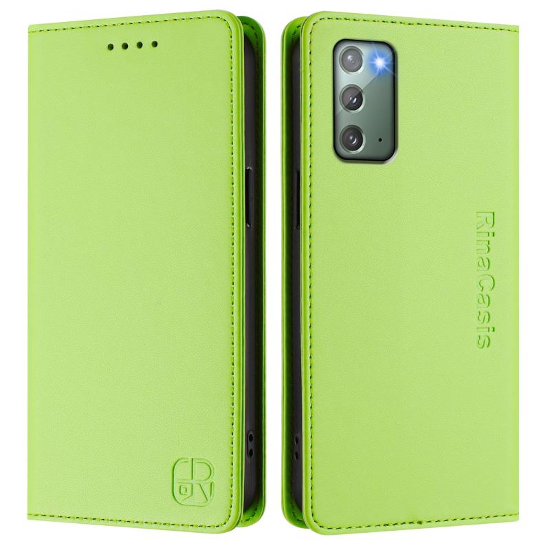 For Samsung Galaxy Note20 RC01 Dual-Folded Magnetic Suction RFID Leather Phone Case(Grass Green)