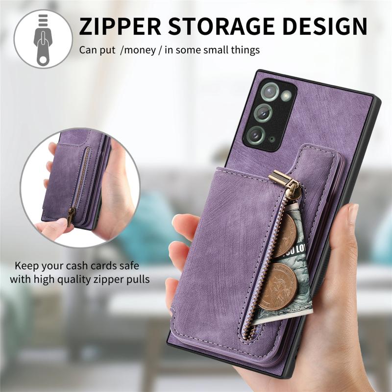 For Samsung Galaxy Note20 Retro Leather Zipper Wallet Back Phone Case(Purple)